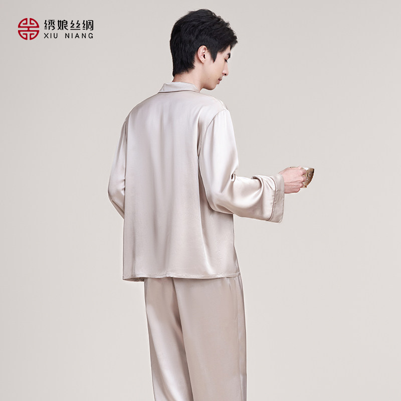绣娘真丝睡衣男士新款宽松舒适睡衣裤套手工刺绣家居服套装两件套
