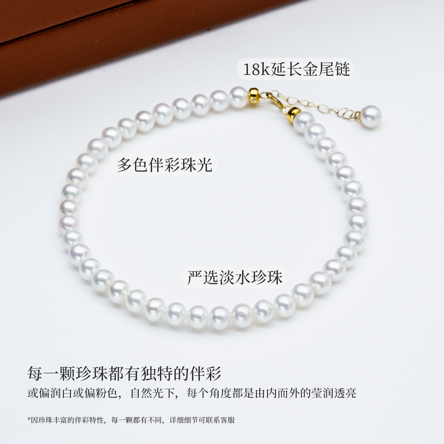 泰诗珍珠淡水手串复古高级感提溜手链18k金珠宝