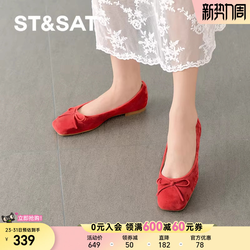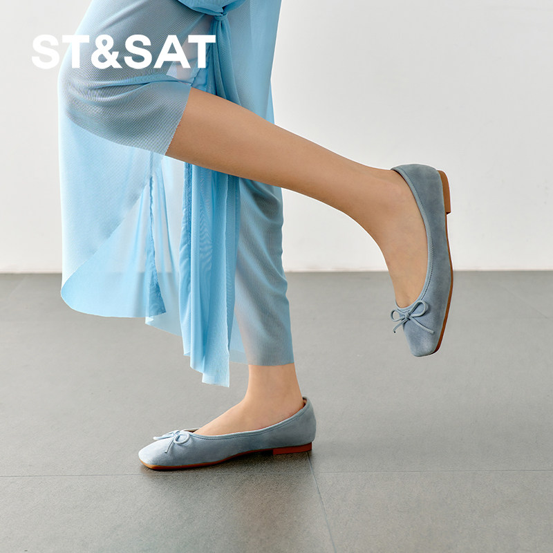 星期六户外休闲鞋百搭平底法式蝴蝶结简约优雅浅口单鞋SSD3111501