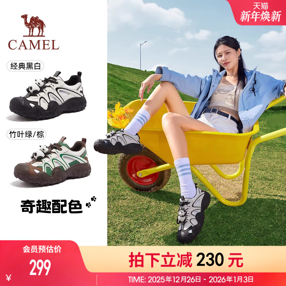 骆驼女鞋2025夏季新款厚底凉鞋女老爹运动增高沙滩鞋女款鞋子清仓