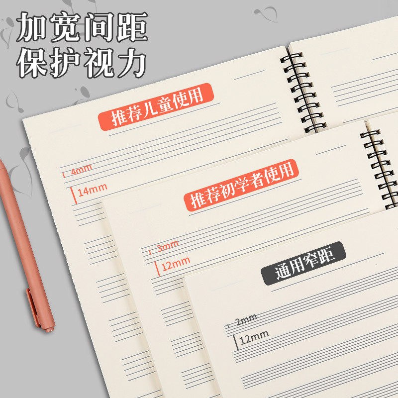 五线谱本初学者儿童宽距乐谱本加厚笔记本子专业a4音乐本大间距钢琴音符乐理本小学生音乐五线谱作业练习本