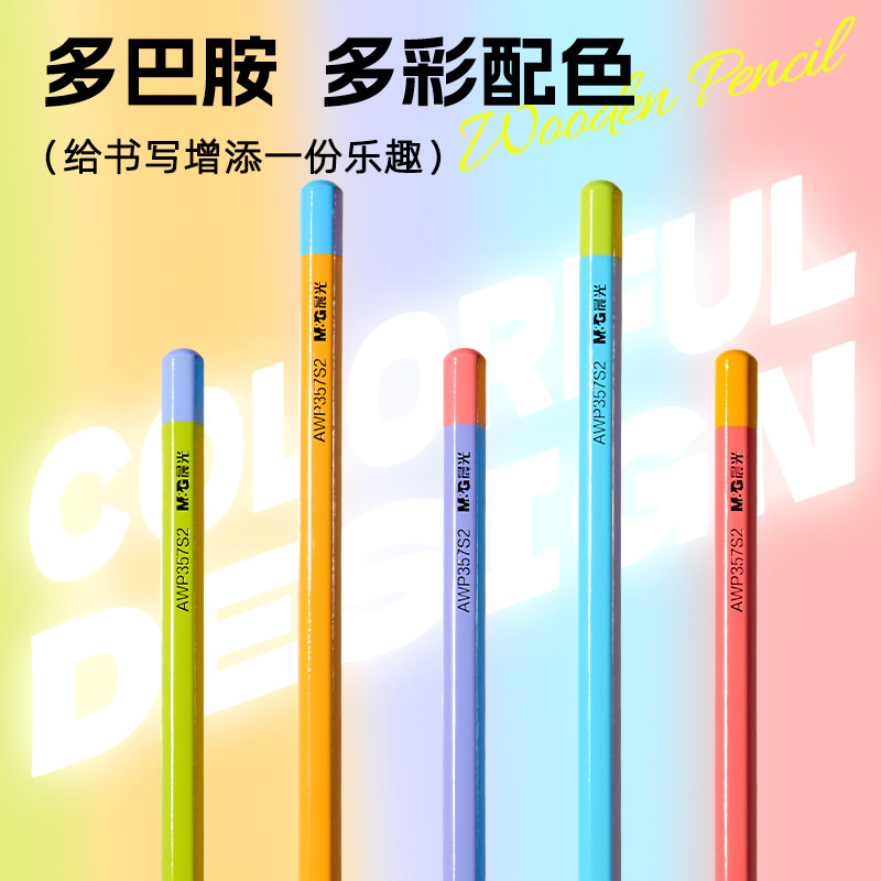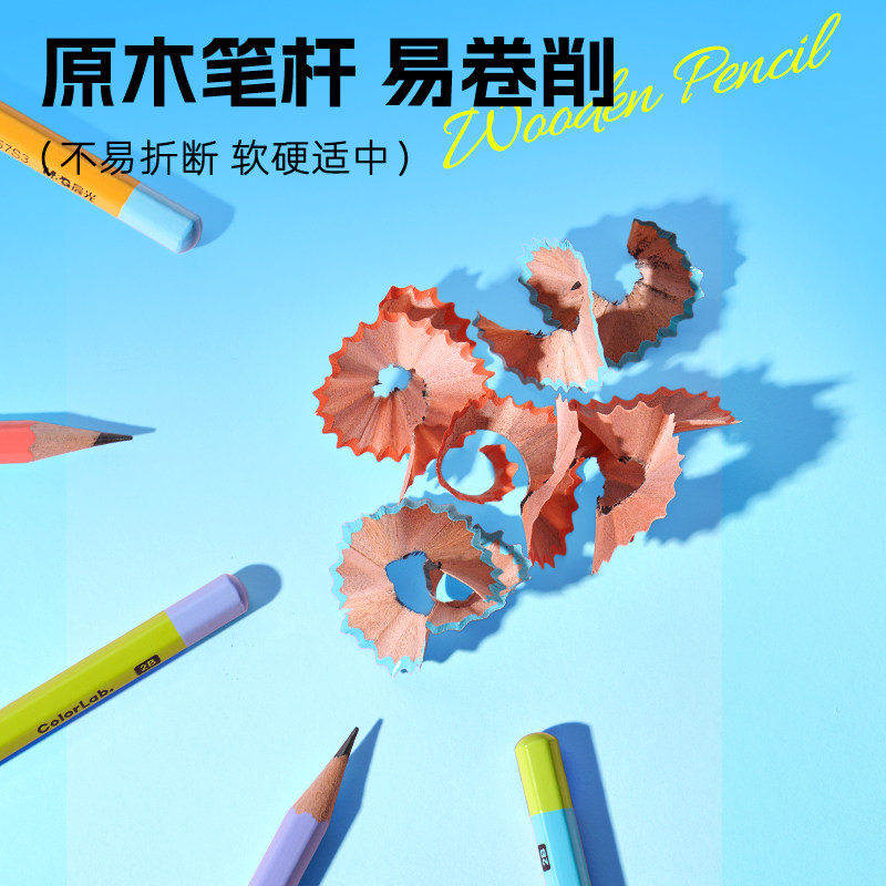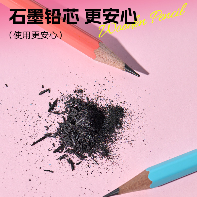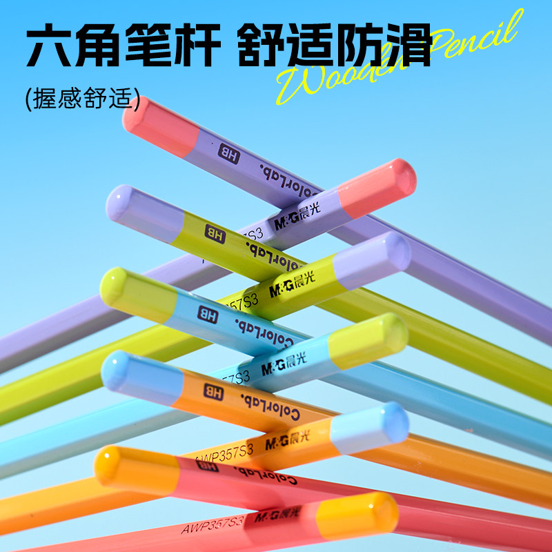 晨光文具彩色多巴胺六角木杆铅笔高颜值小学生专用铅笔一年级hb安全无毒幼儿园2B铅笔儿童练字无铅毒不易断