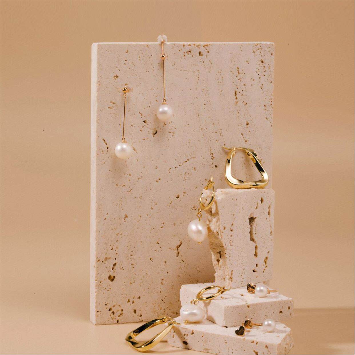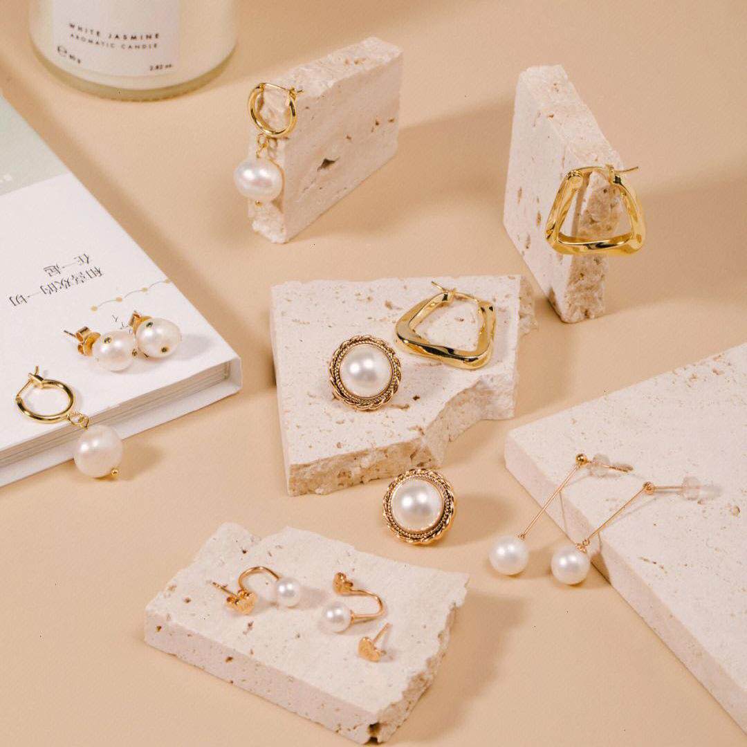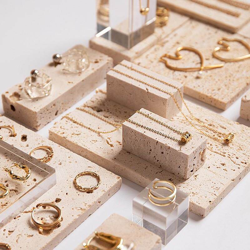 ins米色洞洞石块石头天然大理石垫耳环首饰项链拍照道具摄影背景