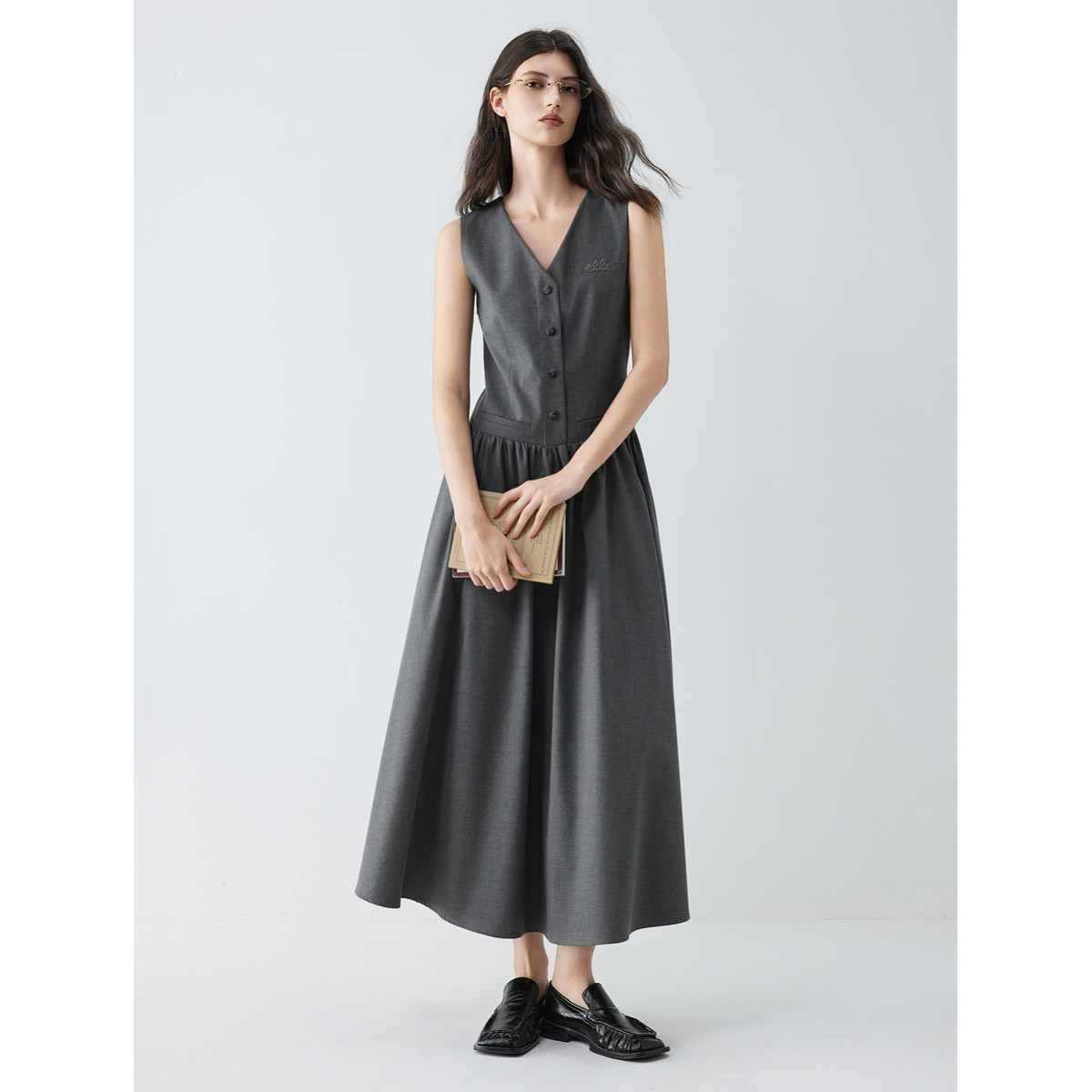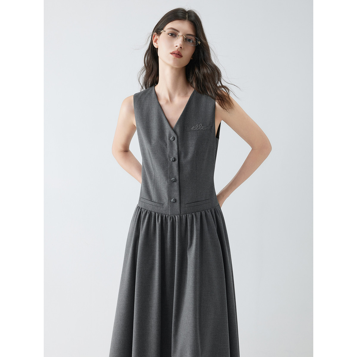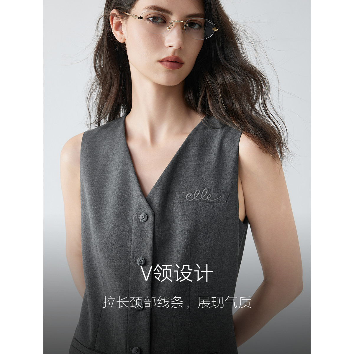 【商场同款】ELLE法式高级感马甲连衣裙女2025秋新款小众气质长裙