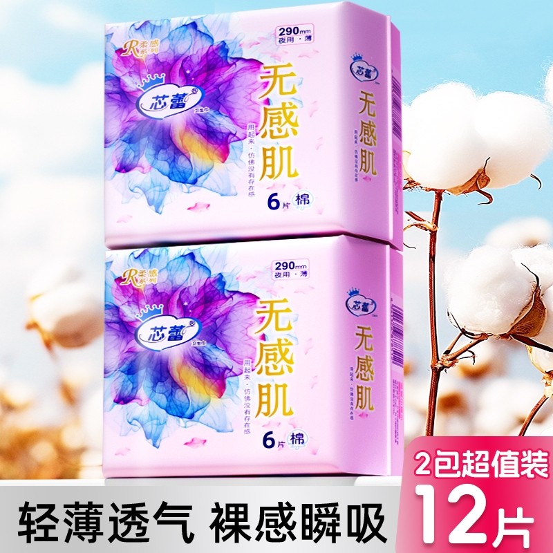 芯蕾肌290夜用卫生巾超薄透气加长批发价姨妈巾6片日用纯棉