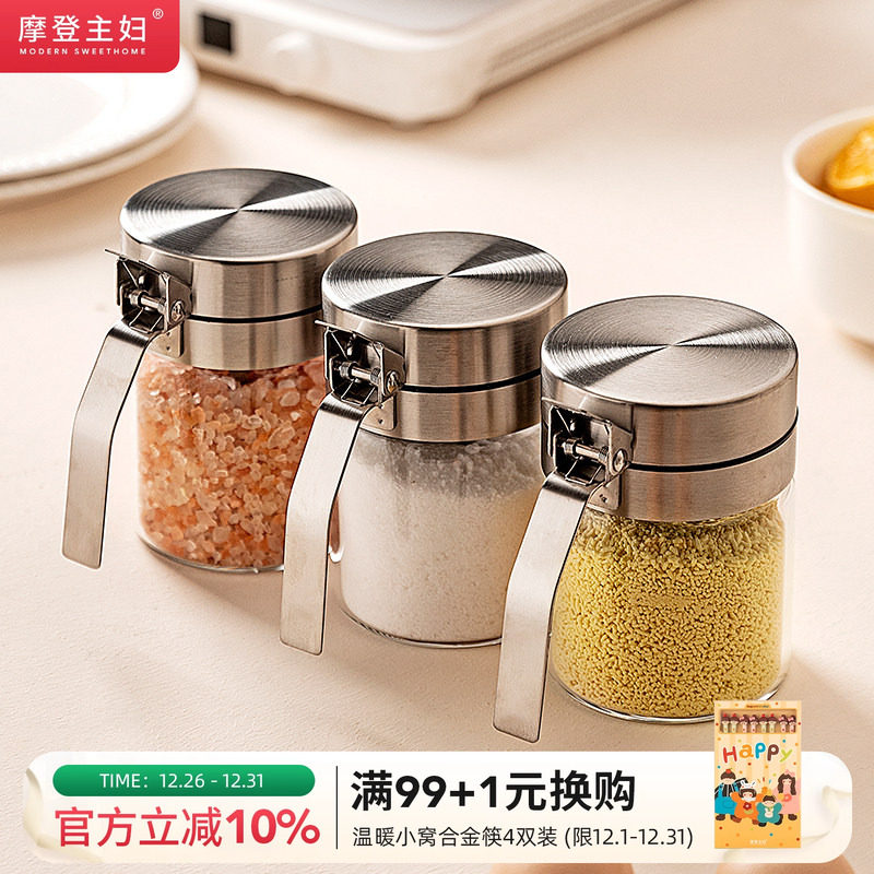 摩登主妇304不锈钢调料罐盐罐家用调味瓶罐玻璃厨房装调料收纳盒