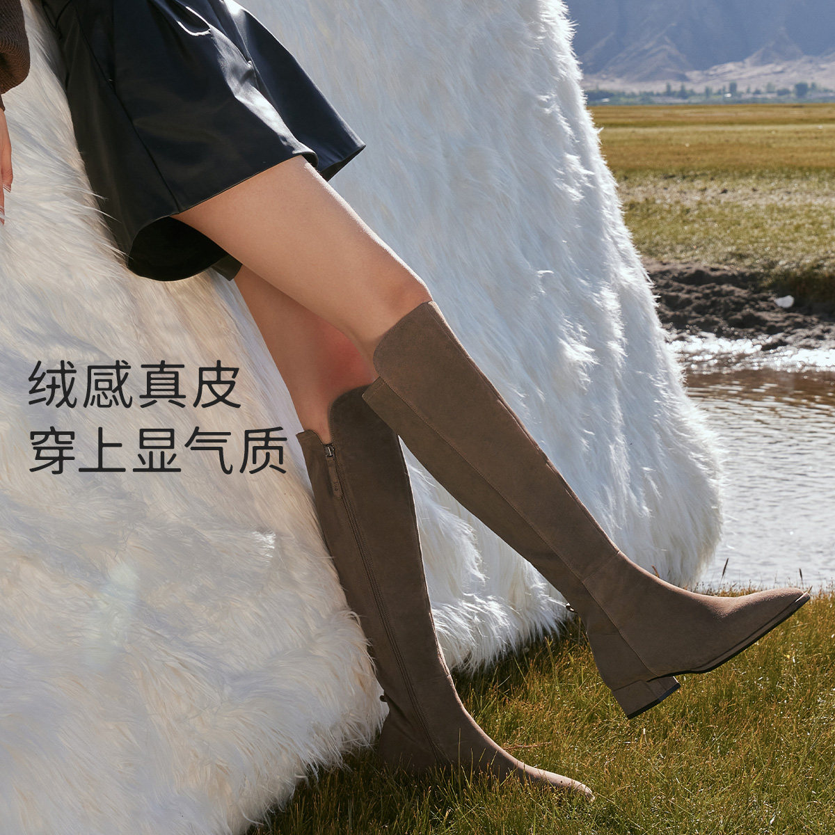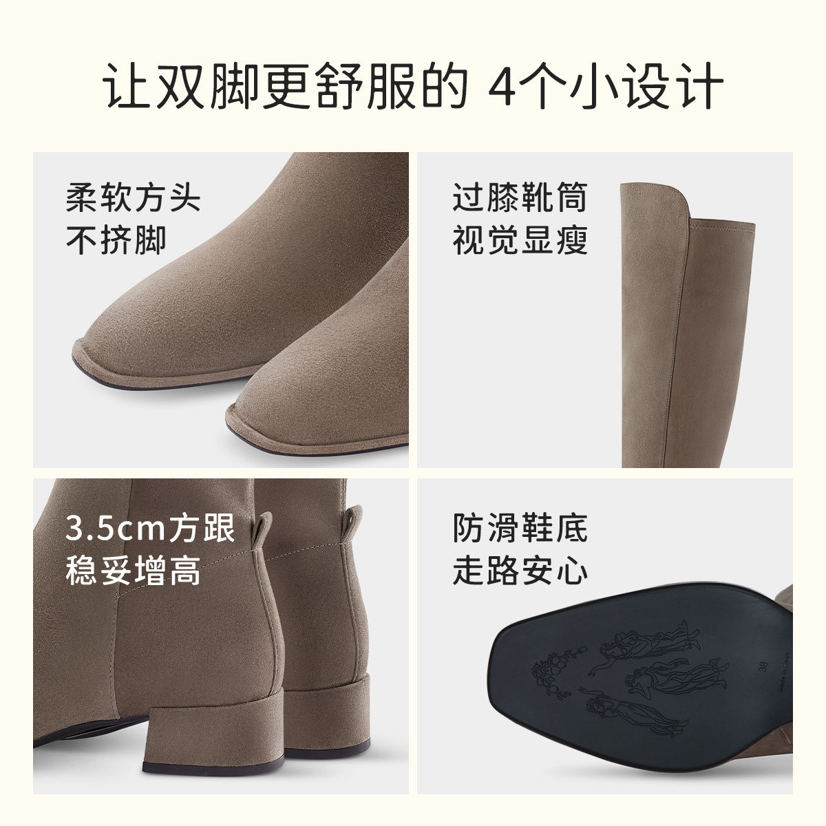 7or9骑士靴子女鞋秋冬过膝靴高筒靴长靴尖头长筒靴瘦瘦靴燕麦麦芬