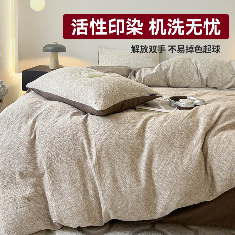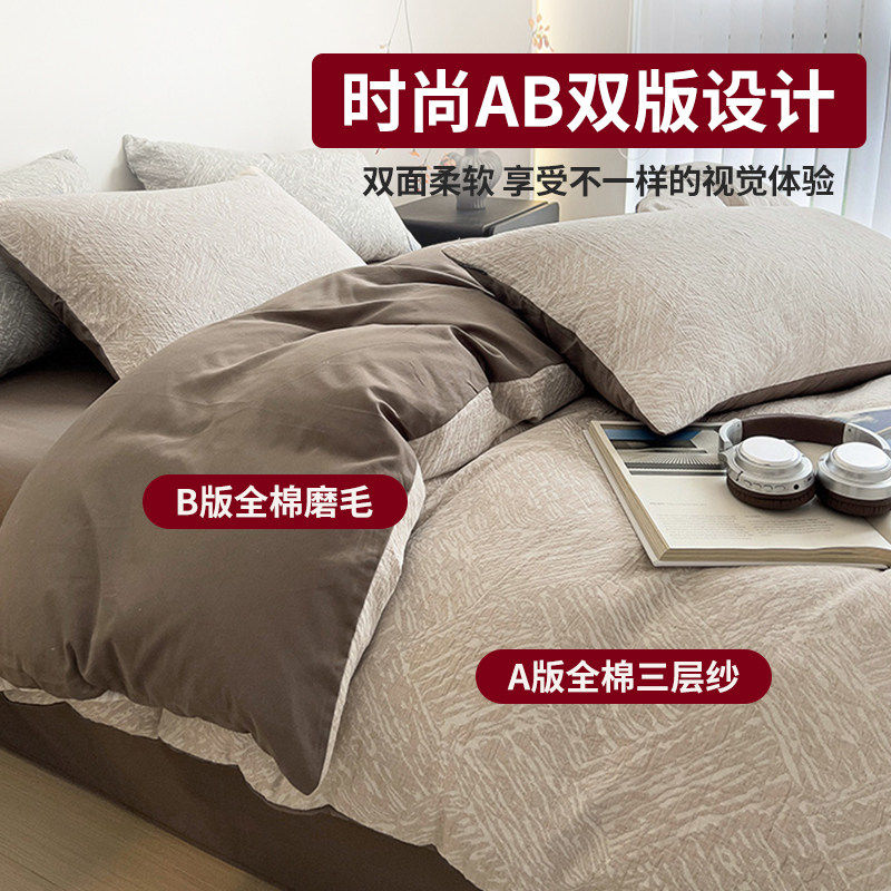 无印良品全棉磨毛床上四件套2025新款纯棉床单人被套罩三件套床品