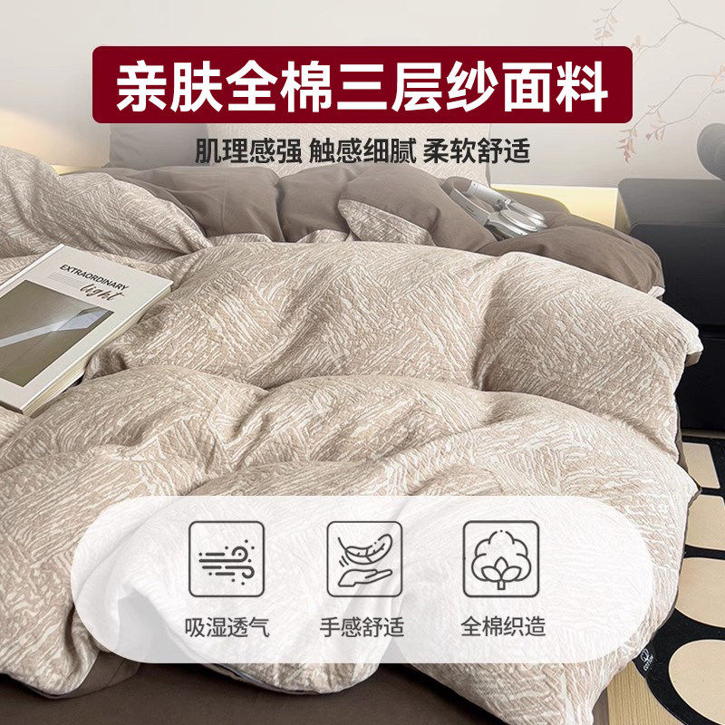 A类双层纱布加厚四件套床上被罩床单被套2026新款学生宿舍三件套4