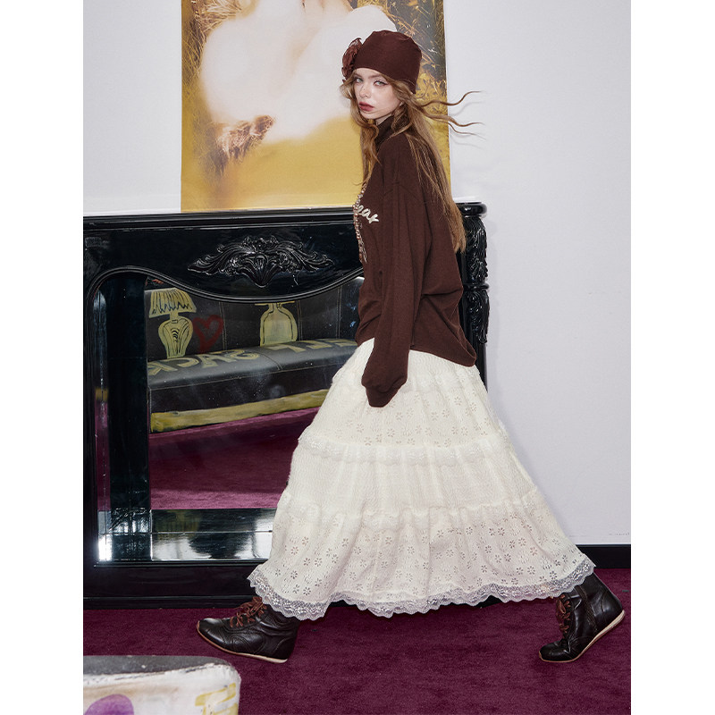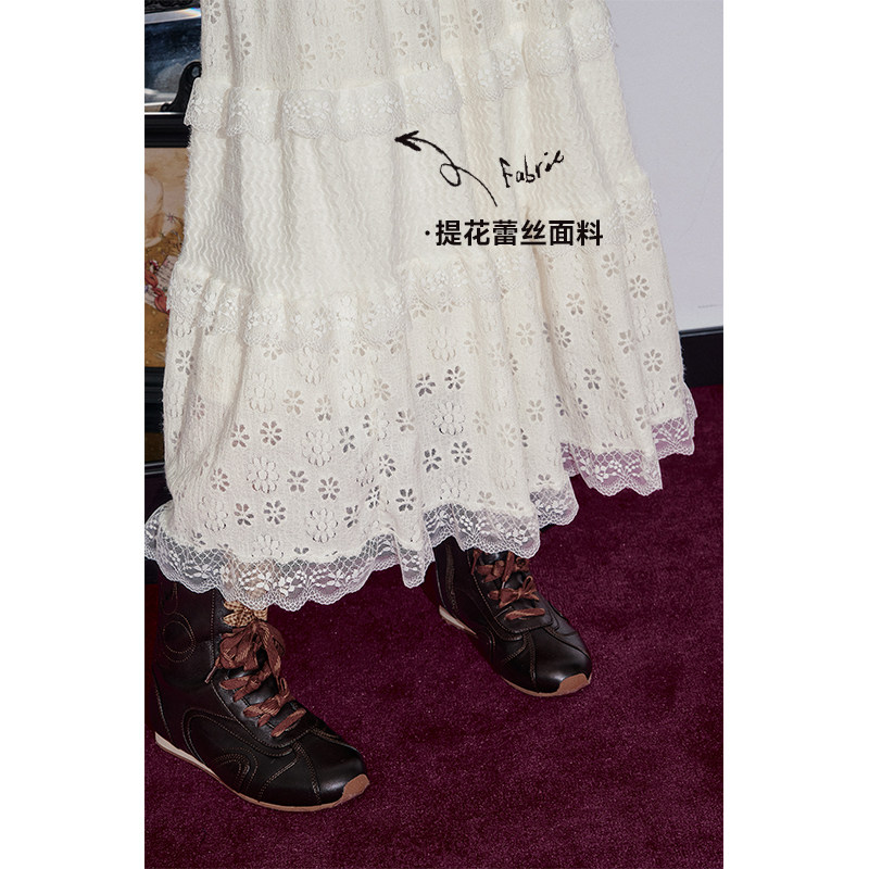 妖精的口袋白色镂空网纱裙半身裙女2025年秋季新款甜美蛋糕裙长裙