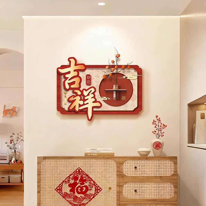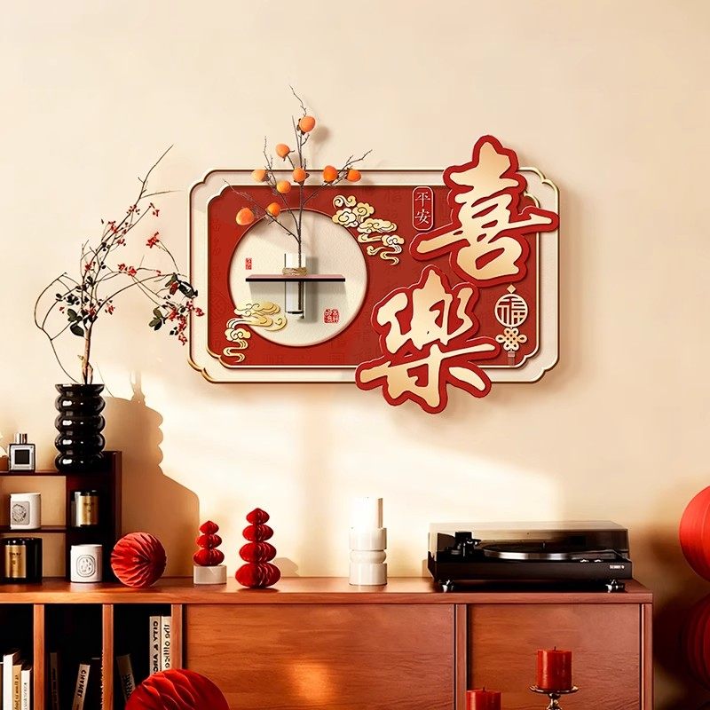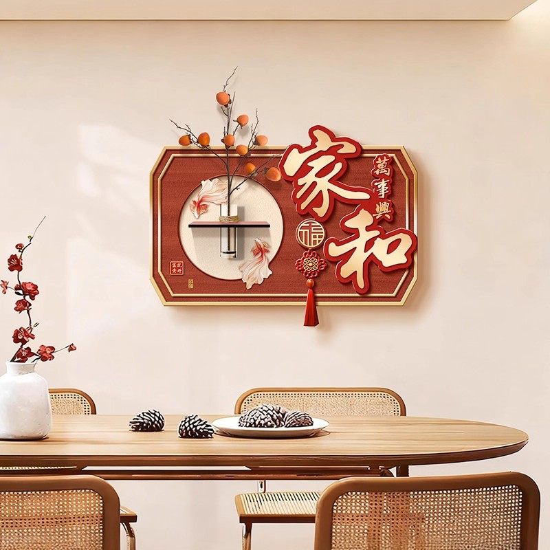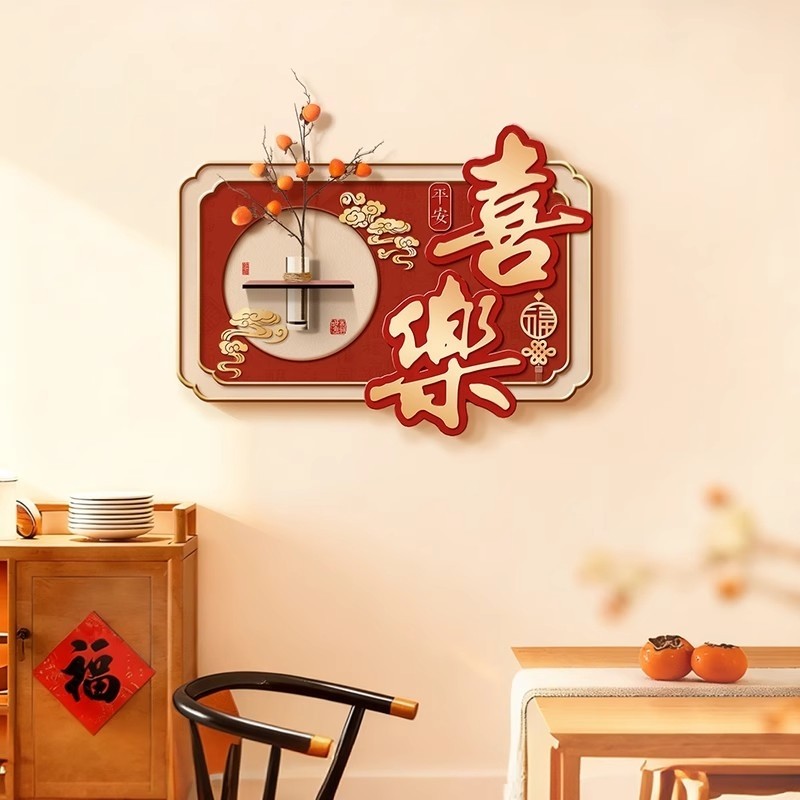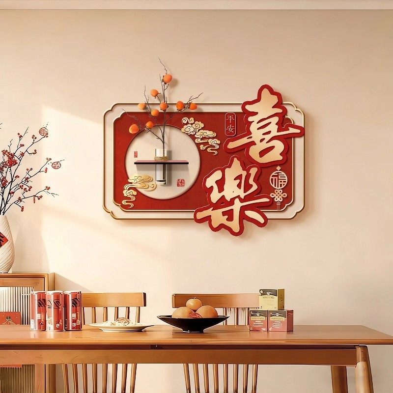 新中式餐厅装饰画红色喜庆壁画中国风新年平安喜乐装饰画水培绿植