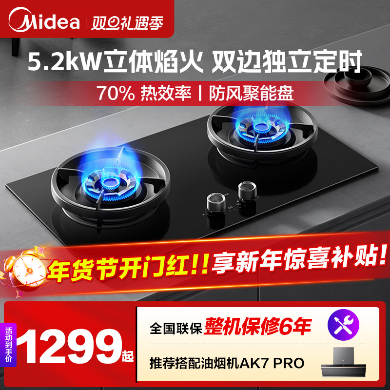 美的燃气灶QD529天然气家用双灶搭配AK7PRO猛火灶台嵌入式煤气灶
