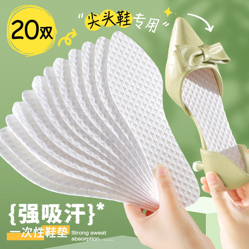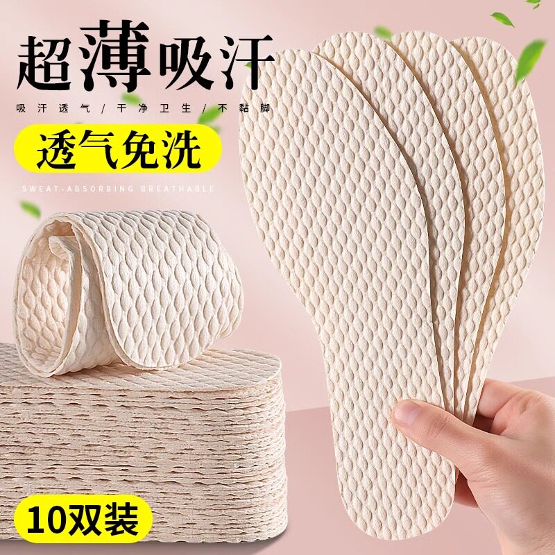 50双一次性木浆鞋垫透气吸汗防臭男女光脚超薄可裁剪舒适除臭尖头