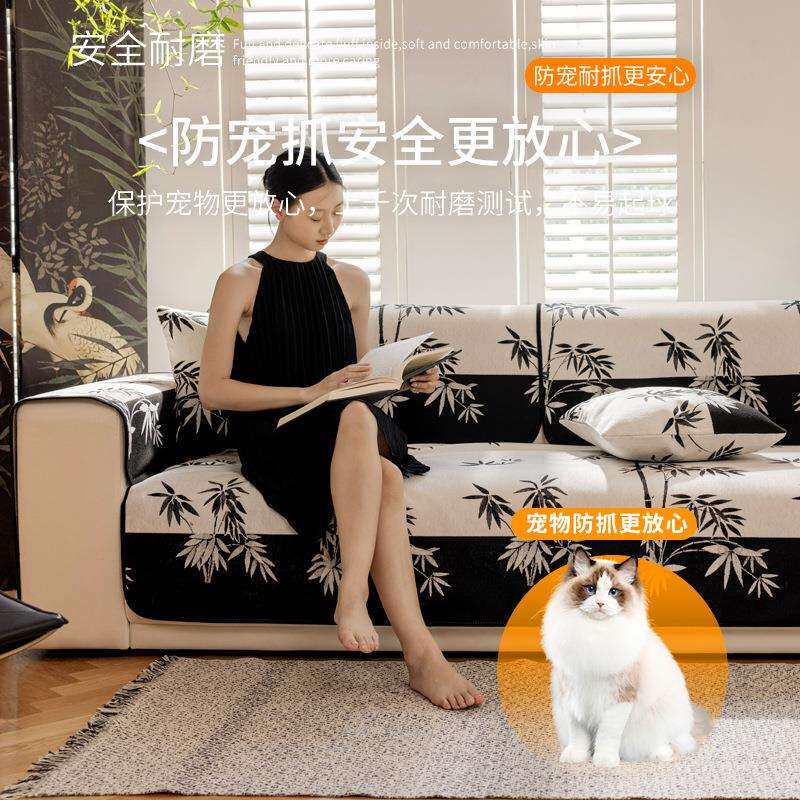 雪尼尔沙发巾一片式2024中式沙发垫四季通用套罩防滑盖毯防猫抓