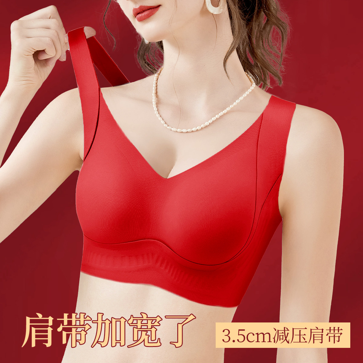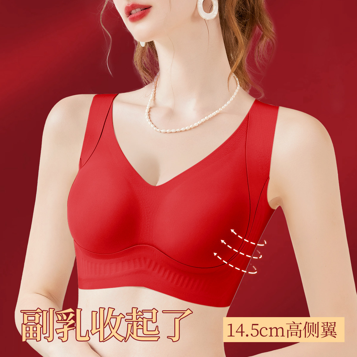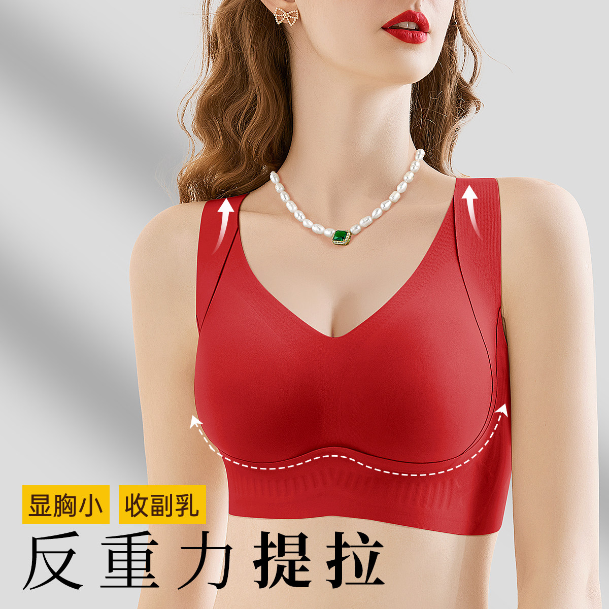 润微大胸提拉内衣女士防下垂隐形无痕红色文胸收副乳大码聚拢胸罩