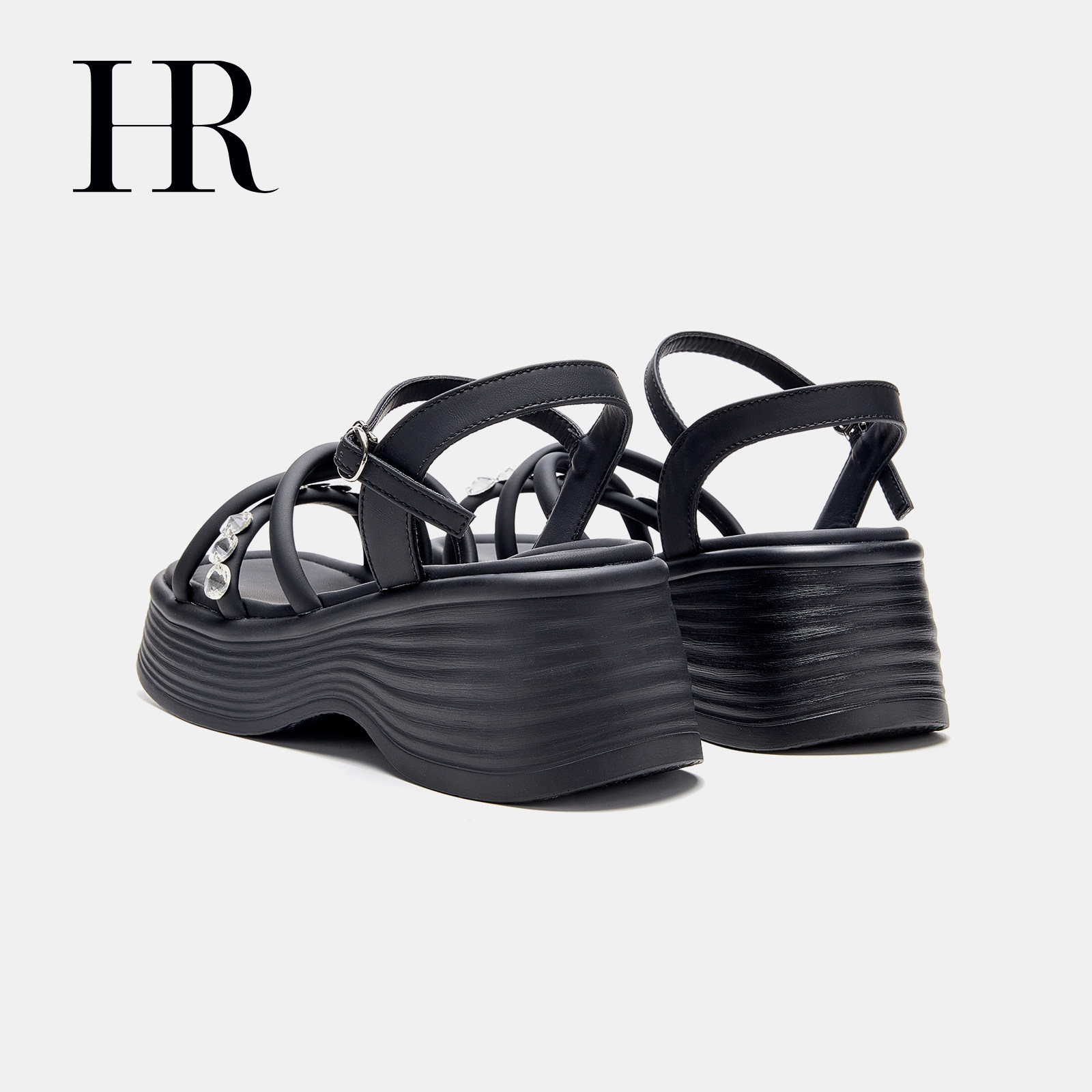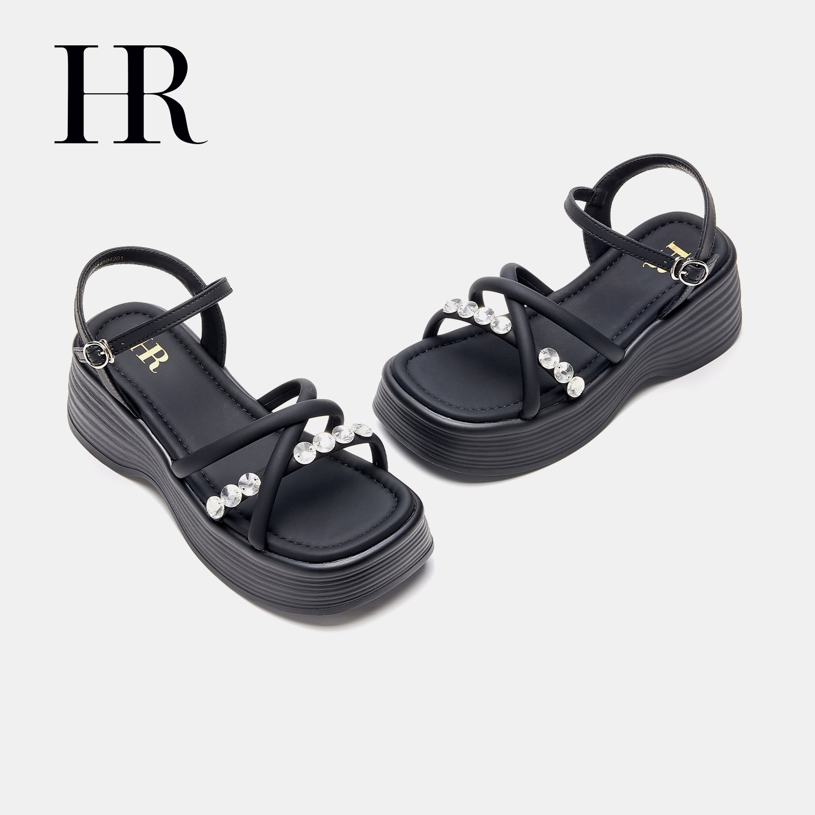 HR赫莲娜女鞋子2025年夏季新款一字带凉鞋厚底防水台水钻时尚露趾