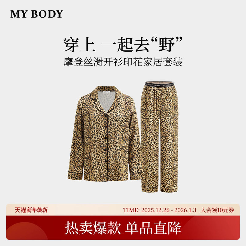 商场同款MYBODY新款睡衣女款摩登丝滑开衫豹纹印花可外穿家居套装