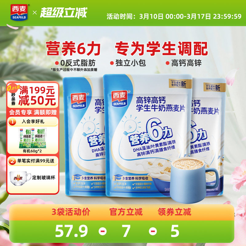 西麦高锌高钙学生牛奶燕麦片300g独立小袋装营养冲饮早餐食品速食