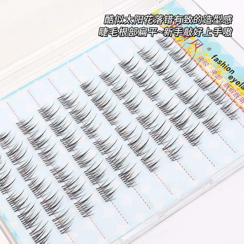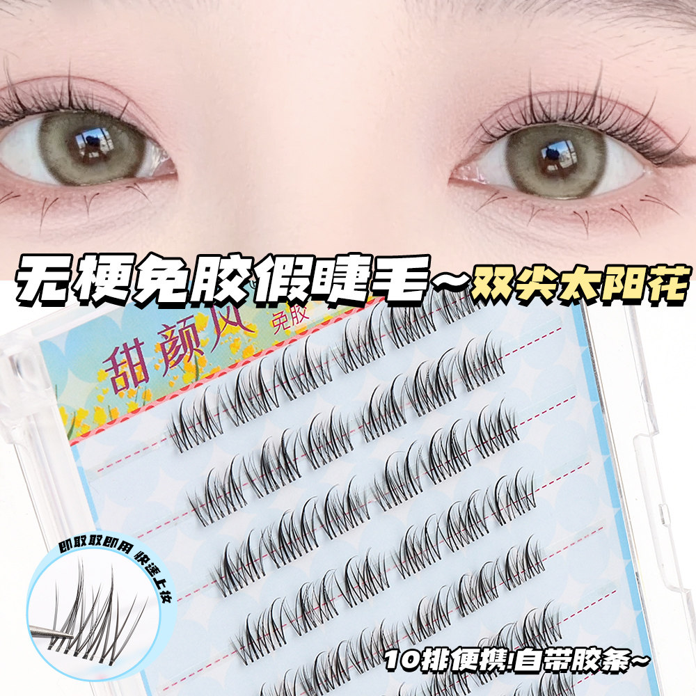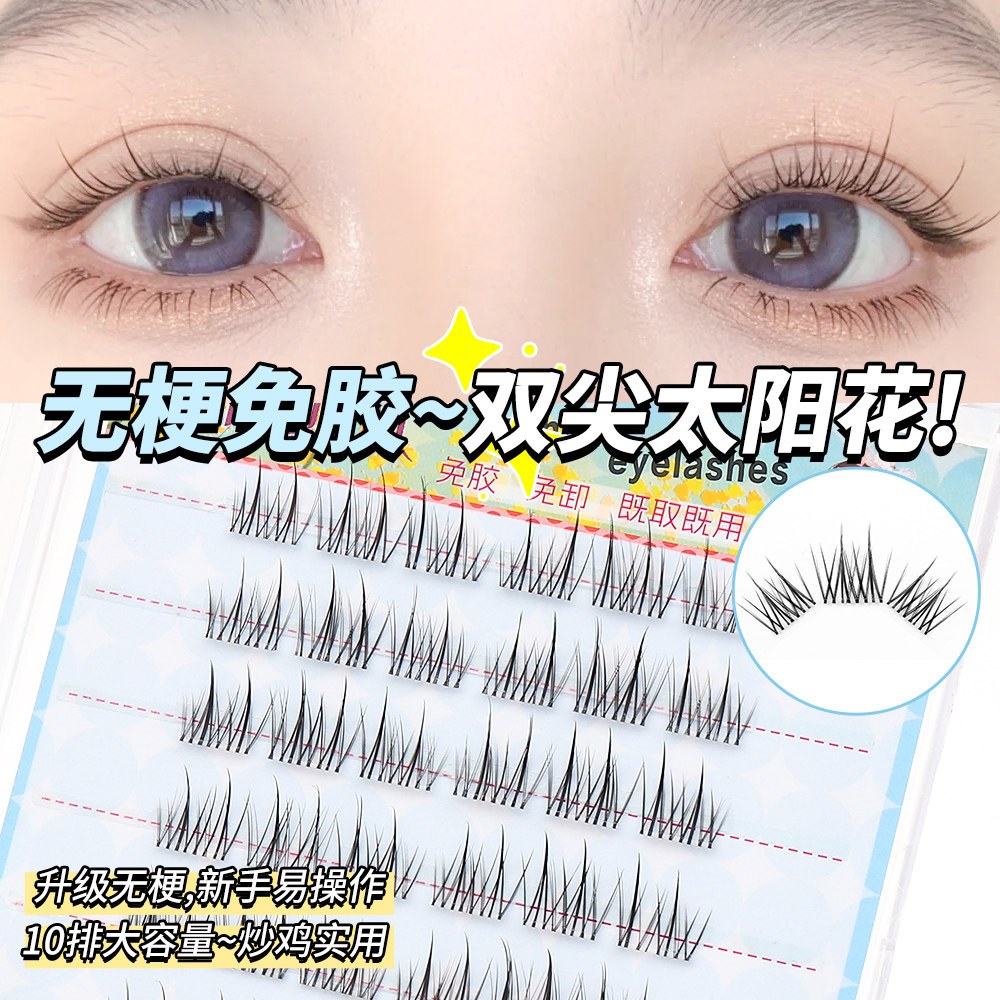 十排【无梗】免胶双尖太阳花假睫毛分段式单簇仿真超软自然纤长