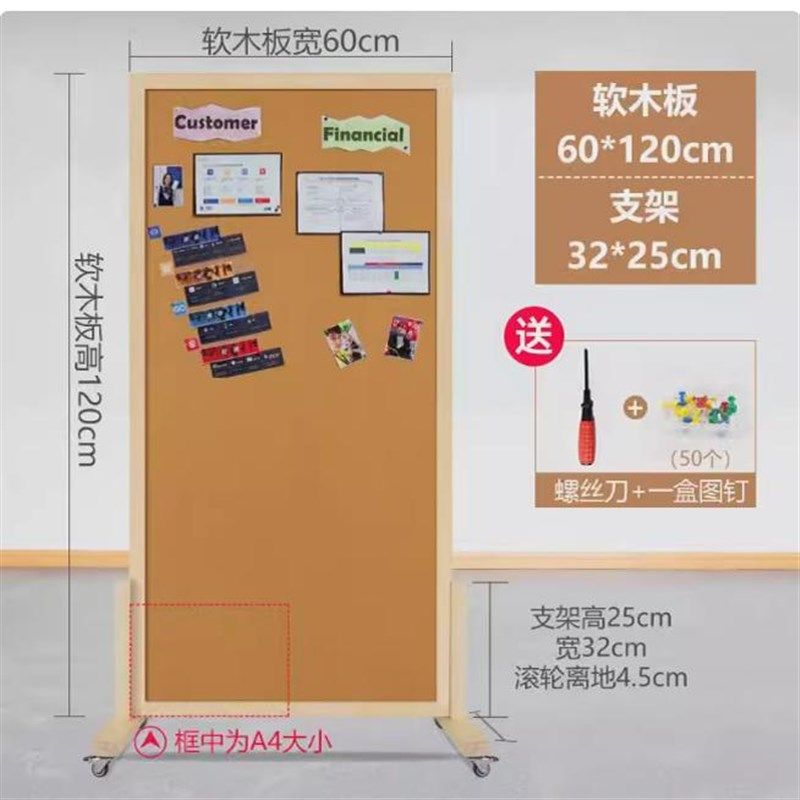 双面软木屏风可移动带滚轮公告背景板留言展示板家用照片墙软木板