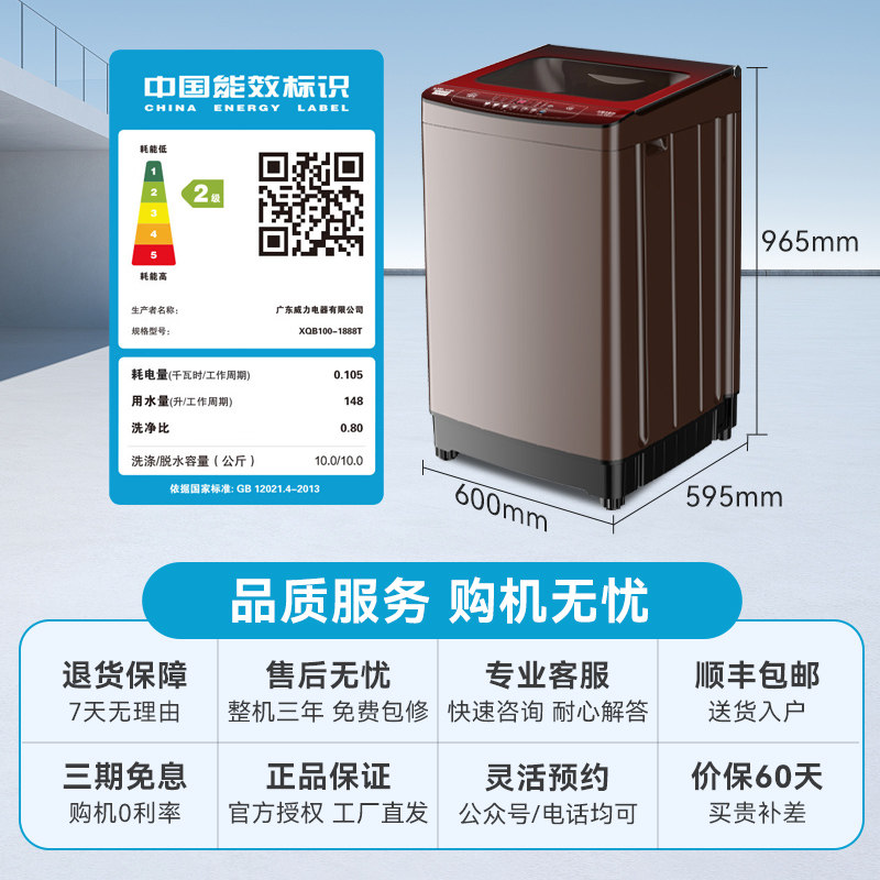 威力10kg全自动波轮洗衣机租房公寓自编程防缠大容量XQB100-1888T