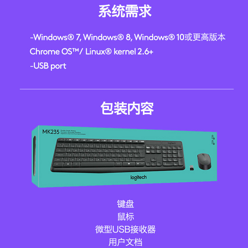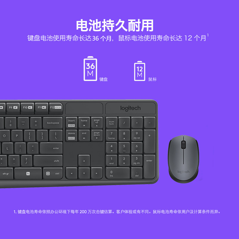 罗技键鼠套装mk235办公家用打字台式电脑笔记本无线薄款耐用便携