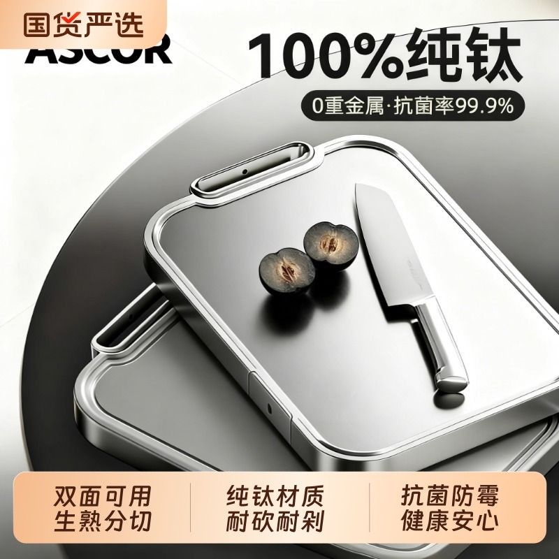 艾仕可纯钛切菜板家用抗菌防霉食品级双面砧板厨房专用案板刀粘板