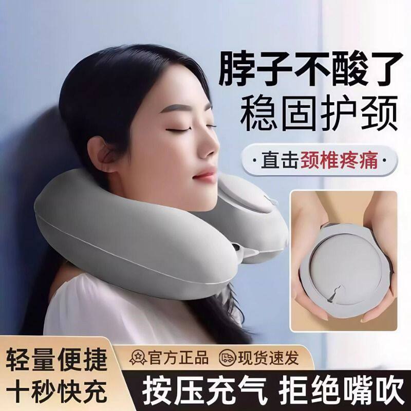 u型枕按压充气枕头便携坐车飞机护脖子旅行u形枕旅游靠枕多规格