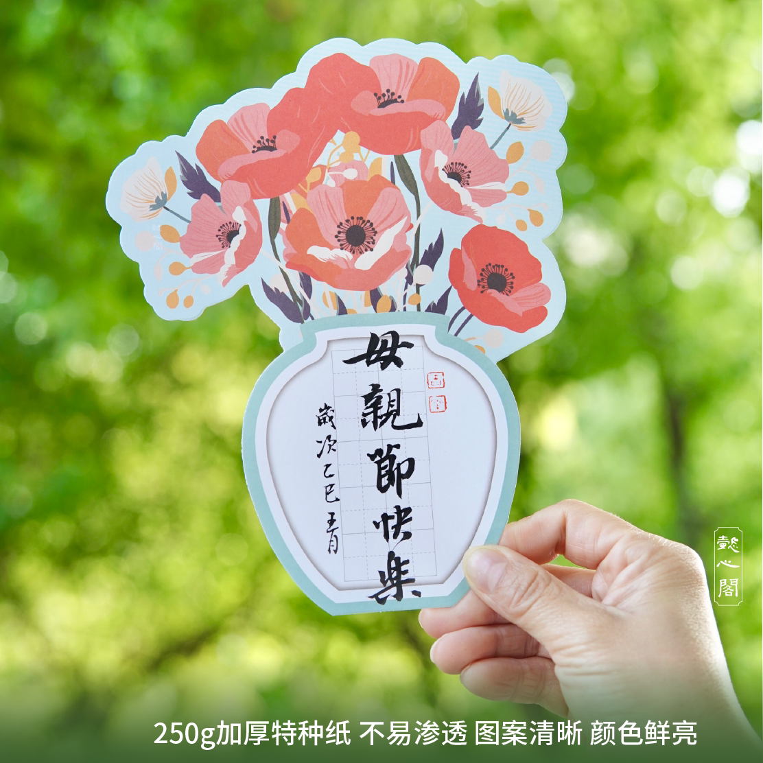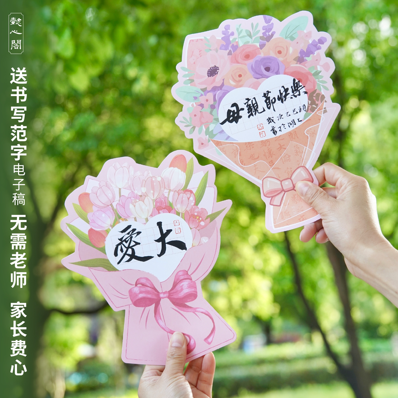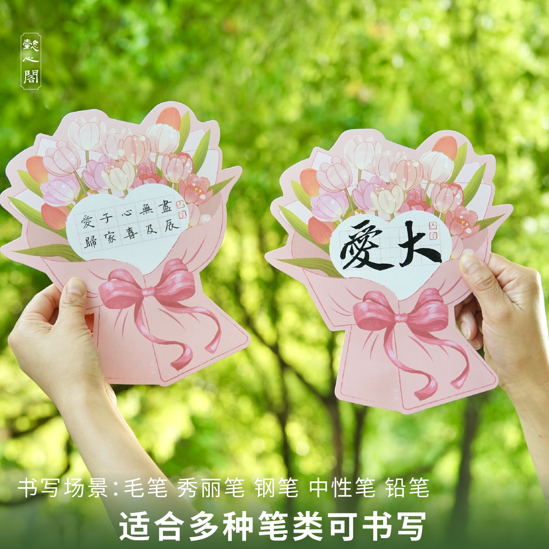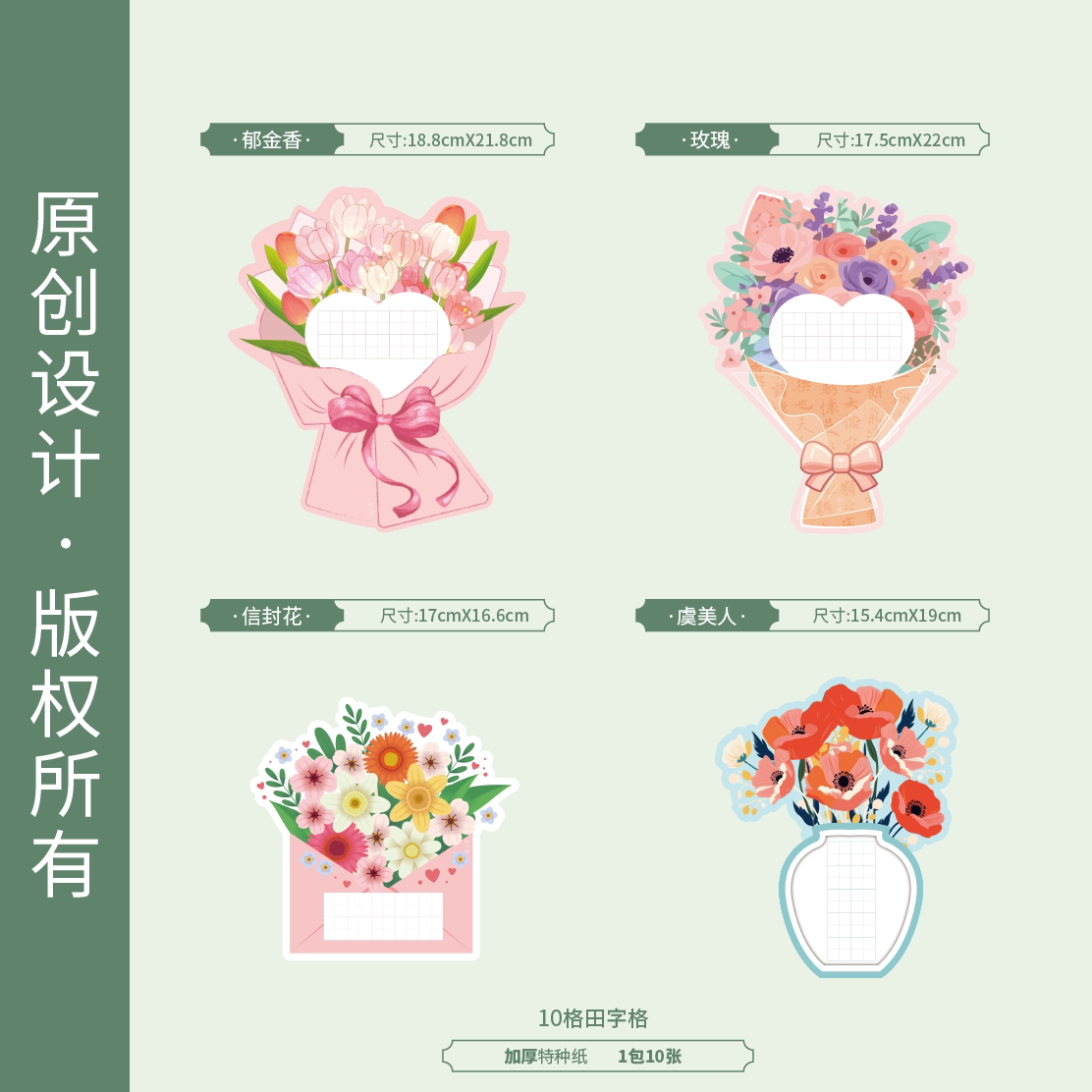 懿心阁妇女节花束创意硬笔书法作品纸手写节日祝福花朵贺卡田字格书法纸小学生鲜花卡片
