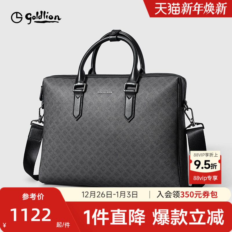 金利来皮具男士新款PVC品牌印花手提包压纹大容量横款男士公文包