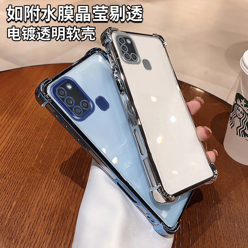 三星a21s手机壳新款四角气囊硅胶防摔时尚镜头全包软壳适用Samsunga21s高端奢华强抗氧化简约电镀透明手机壳
