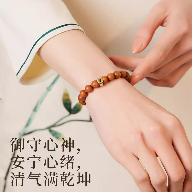 天然老桃木手串女木质佛珠静心护身本命佛男和田玉转运珠生肖手链