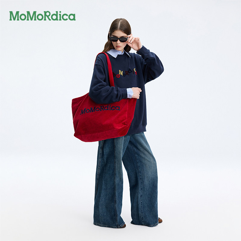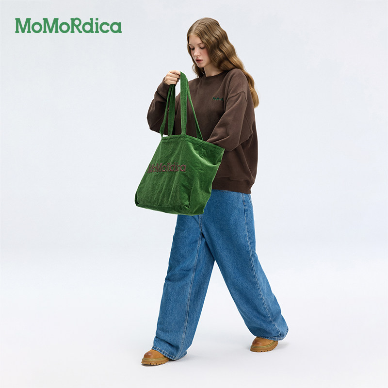 【Momordica专场】Momordica时尚大容量撞色字母刺绣灯芯绒单肩包