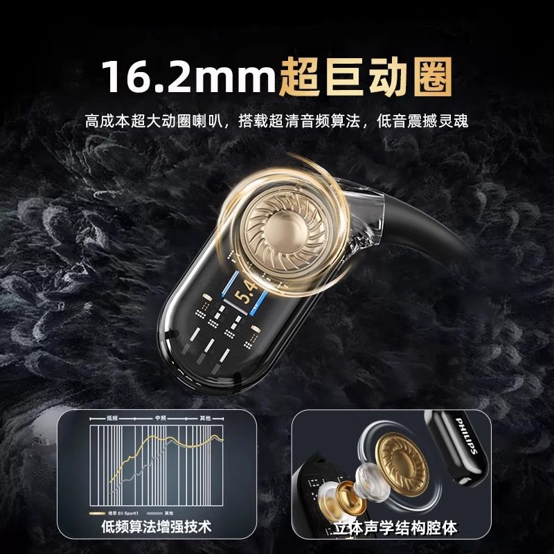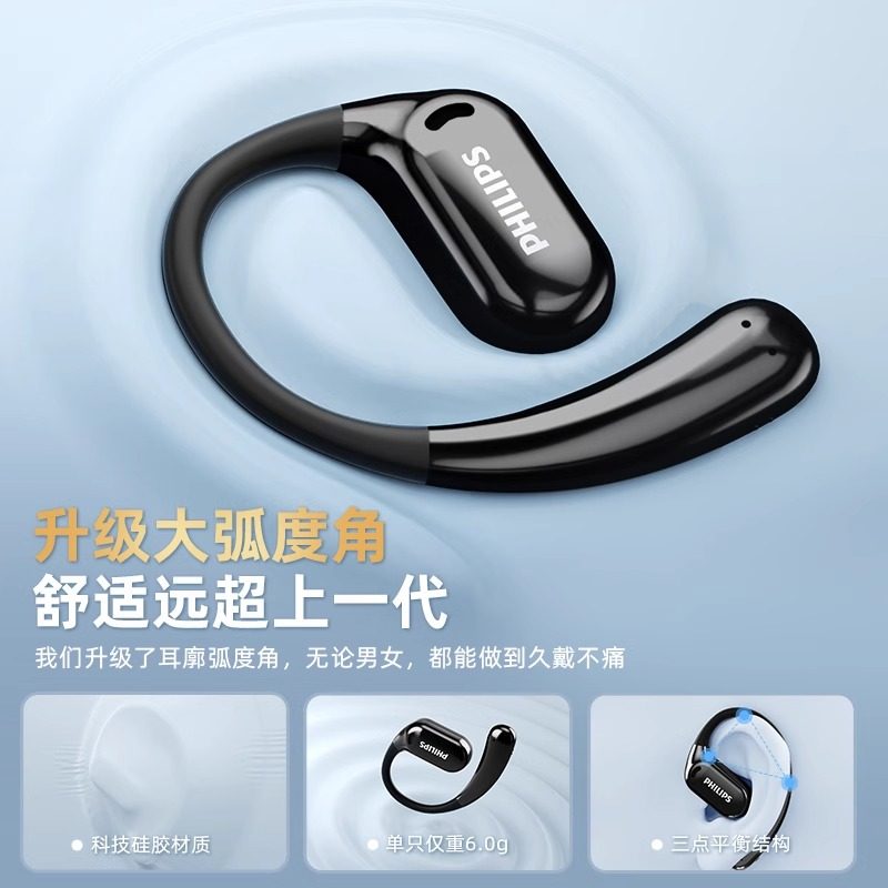 飞利浦TAT3739蓝牙耳机骨传导概念无线挂耳开放式长续航降噪耳机