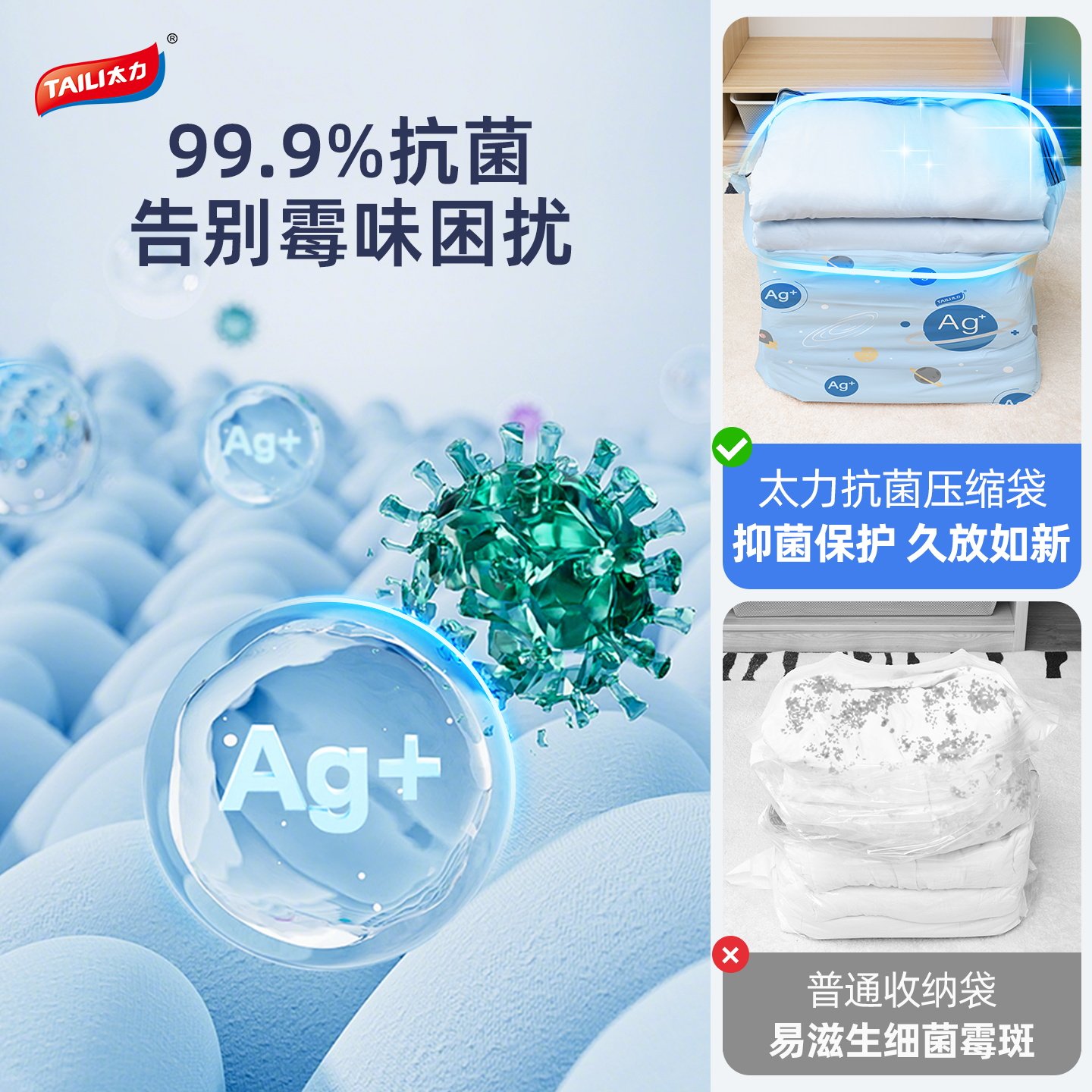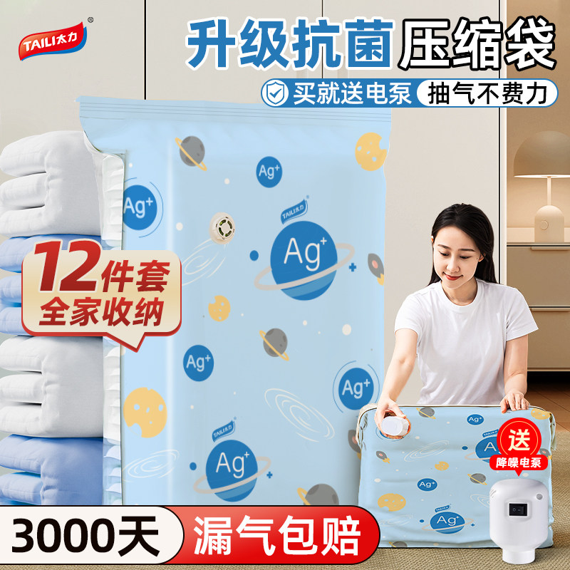 太力真空压缩袋收纳衣服被子衣物抗菌家用羽绒服棉被抽气旅行神器