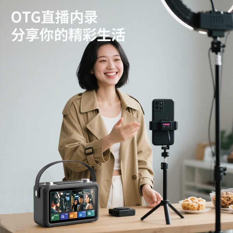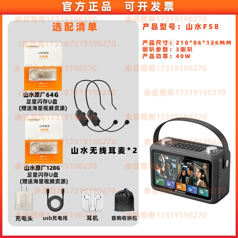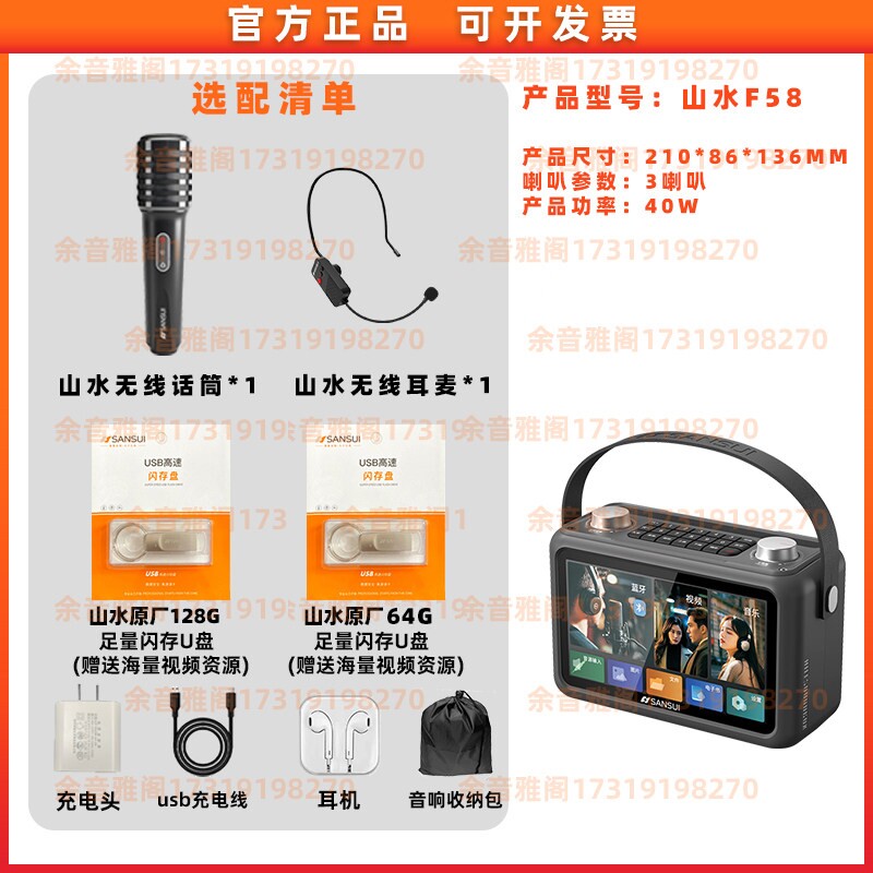 山水F58视频音响户外家用带话筒K歌蓝牙声卡直播音箱一体机智能