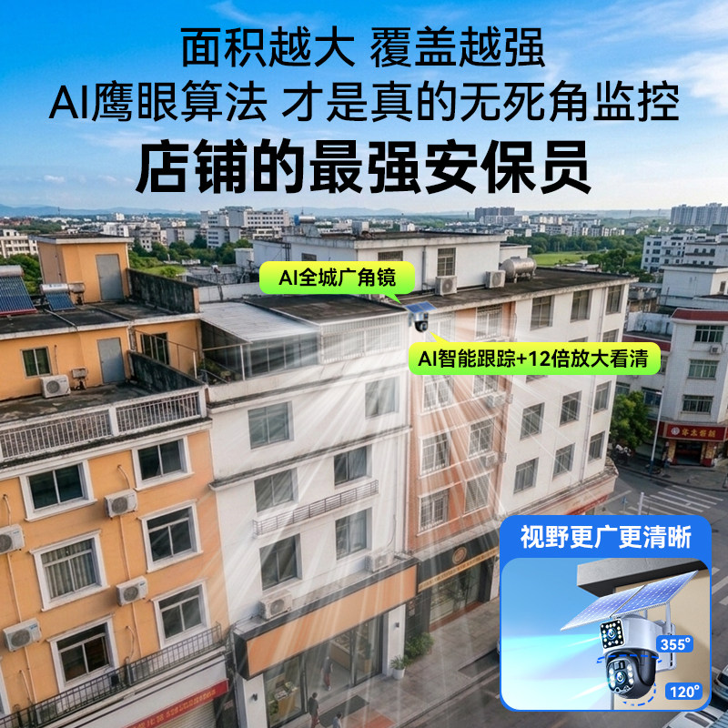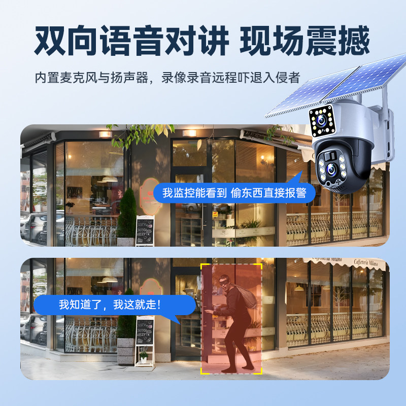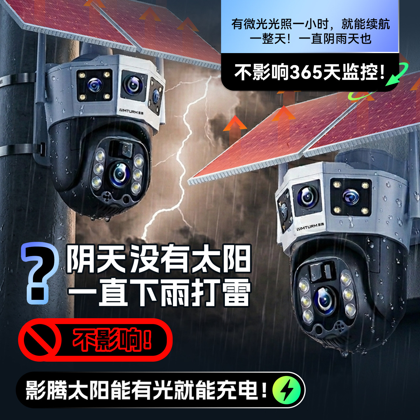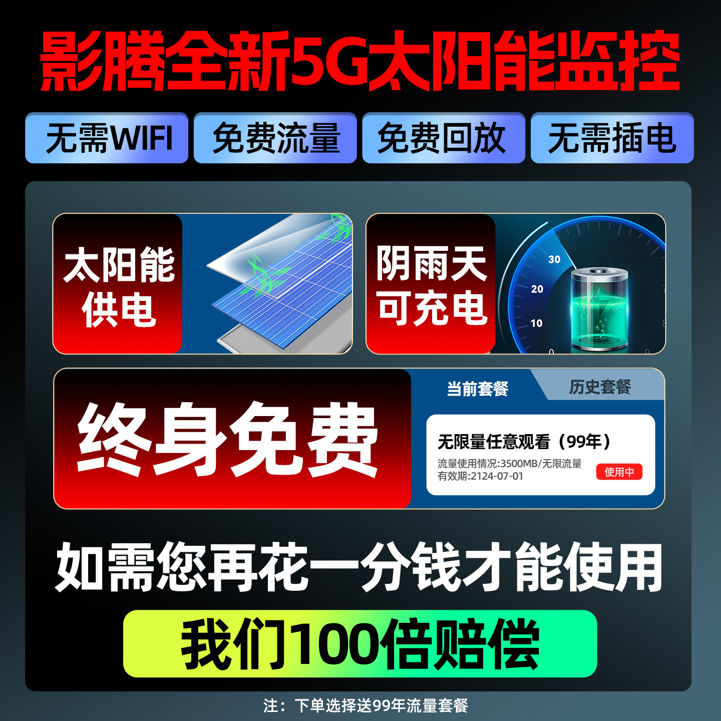 影腾太阳能摄像头监控器户外360度无死角手机远程无网无电室外4G