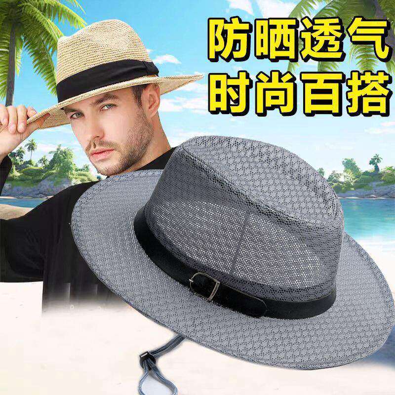 男士夏季帽子礼帽旅游防晒透气大沿帽春夏天草帽防风遮阳帽海边
