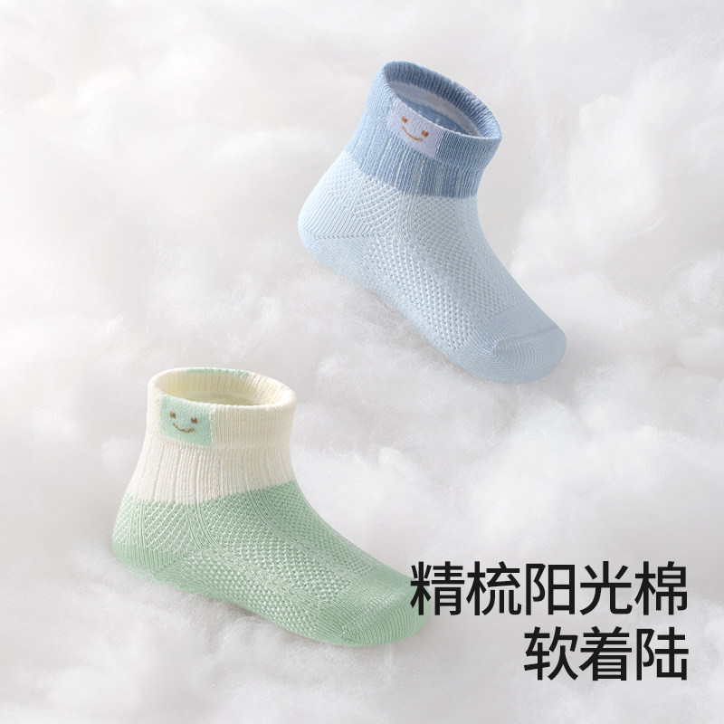贝肽斯儿童袜子春夏薄款男女童婴儿短筒袜纯棉透气新生宝宝网眼袜