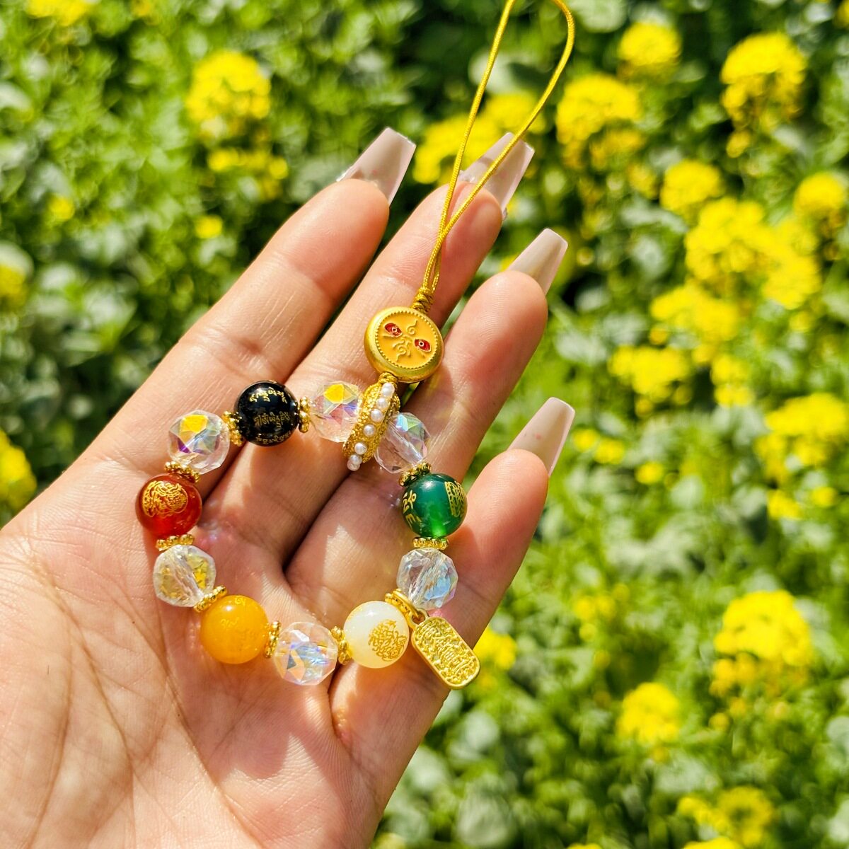 【北京宫内】雍民族风合金瓷琉璃手机链钥匙唐卡五路财神挂件电镀