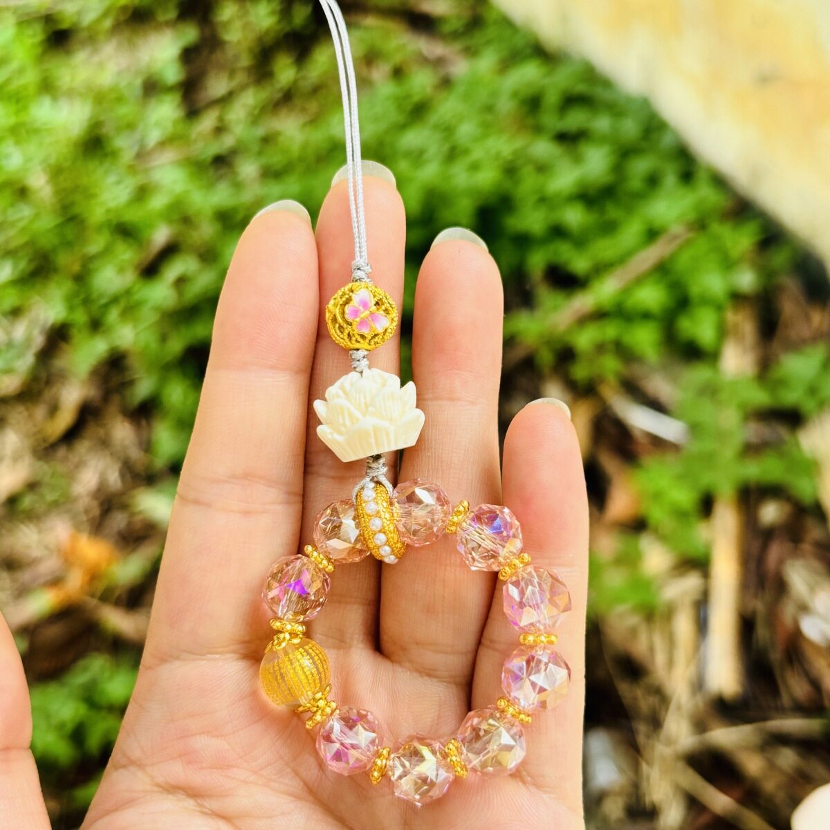 奢华高级感水晶手提链条手腕短挂绳带夹片壳钥匙扣包包挂件潮