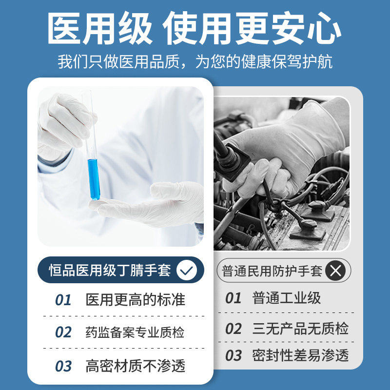 恒品医用手套一次性丁腈橡胶耐用加厚外科手术检查正品官方旗舰店