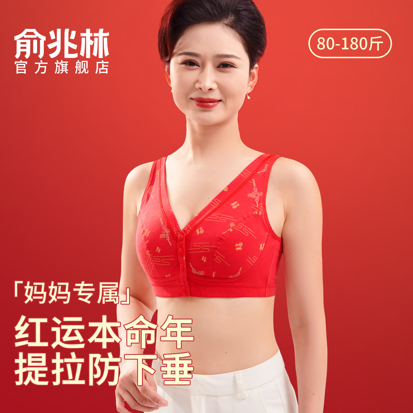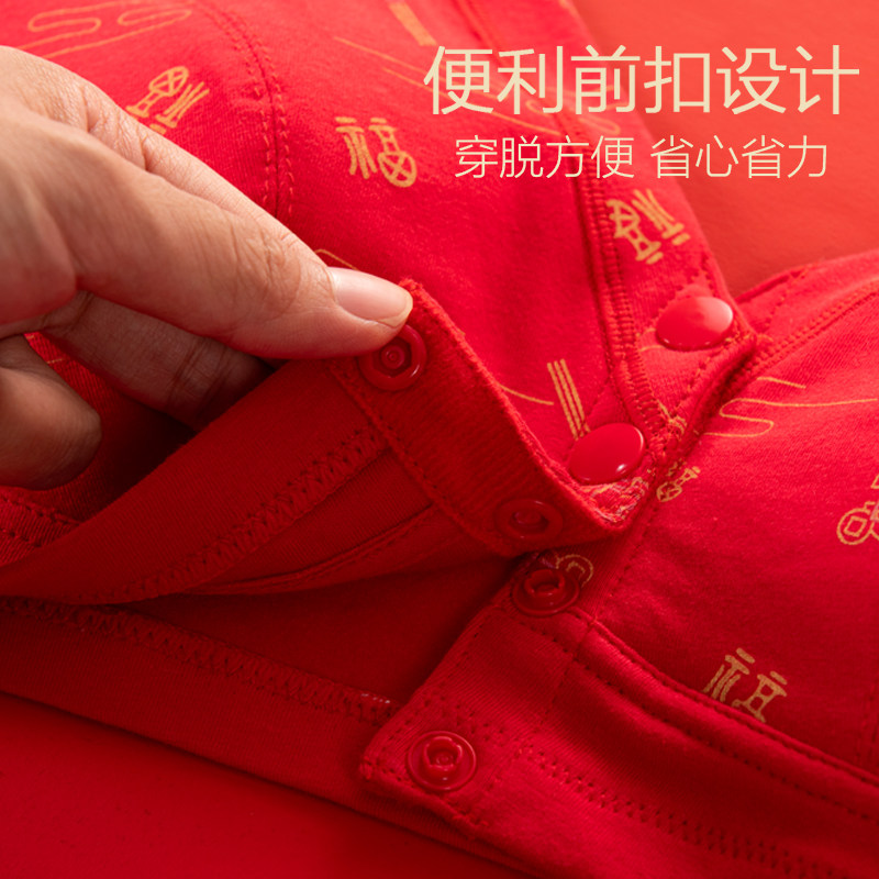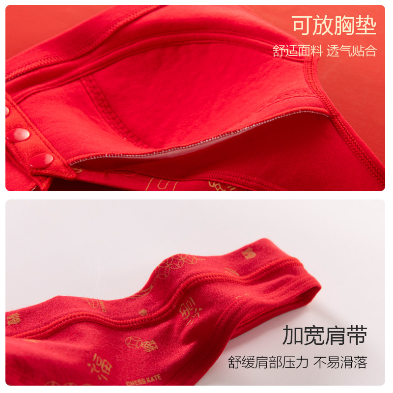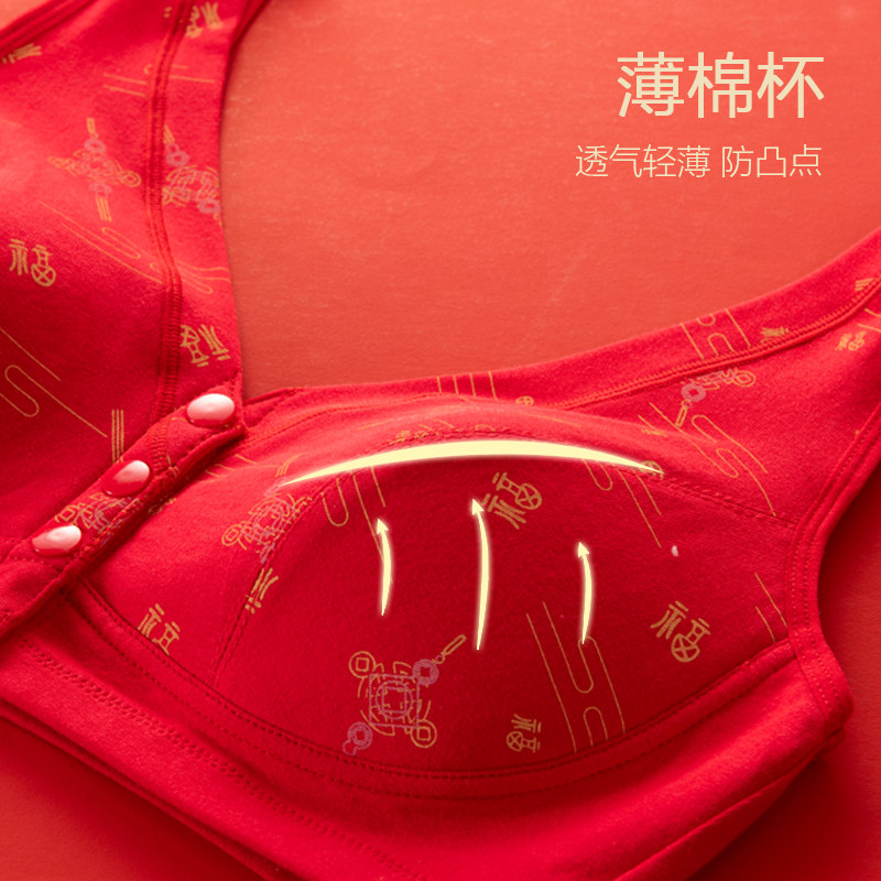 本命年红色内衣套装妈妈文胸中老年人专用纯棉前扣式背心大码胸罩