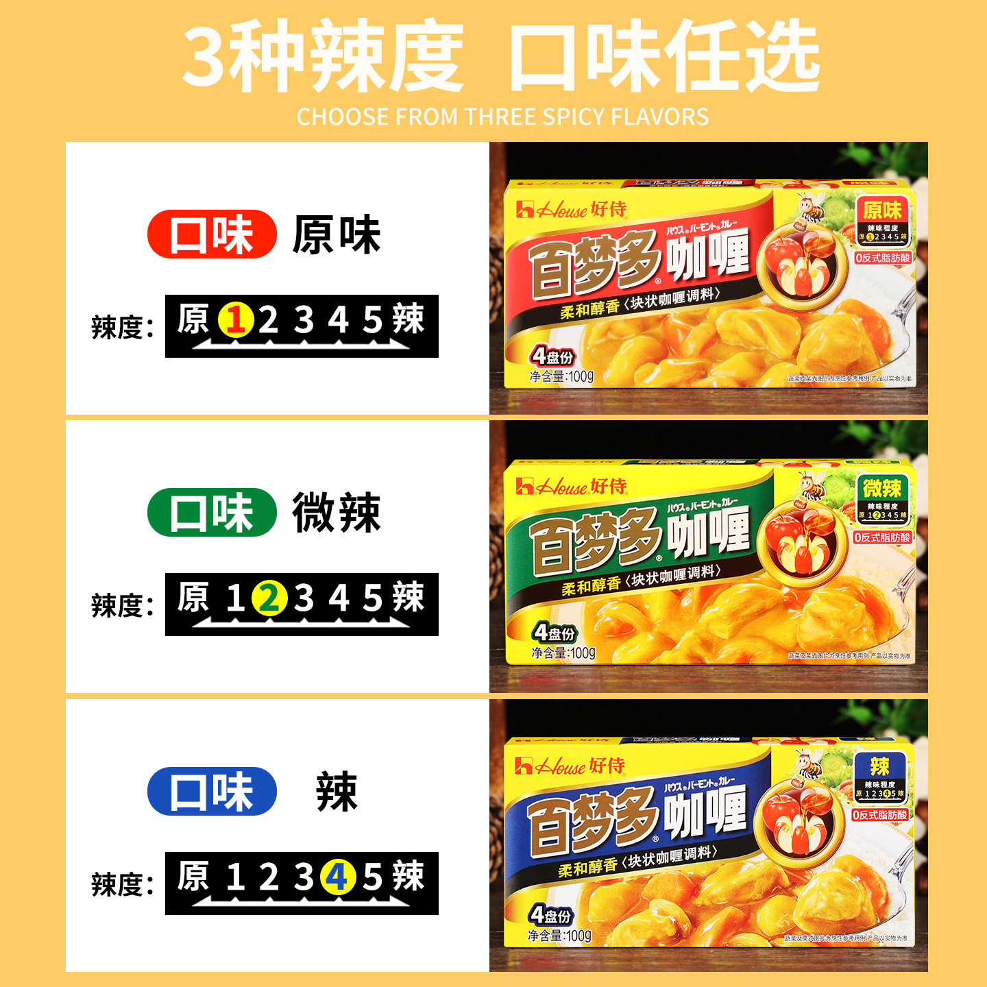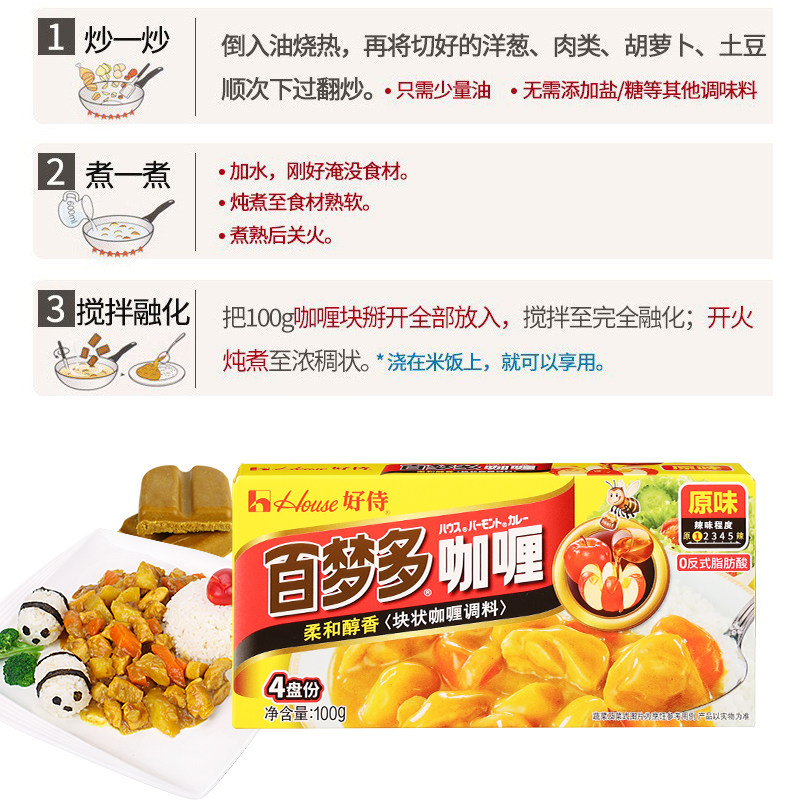 好侍百梦多咖喱块3盒家用日式风味鸡肉原味微辣黄儿童料理包调料
