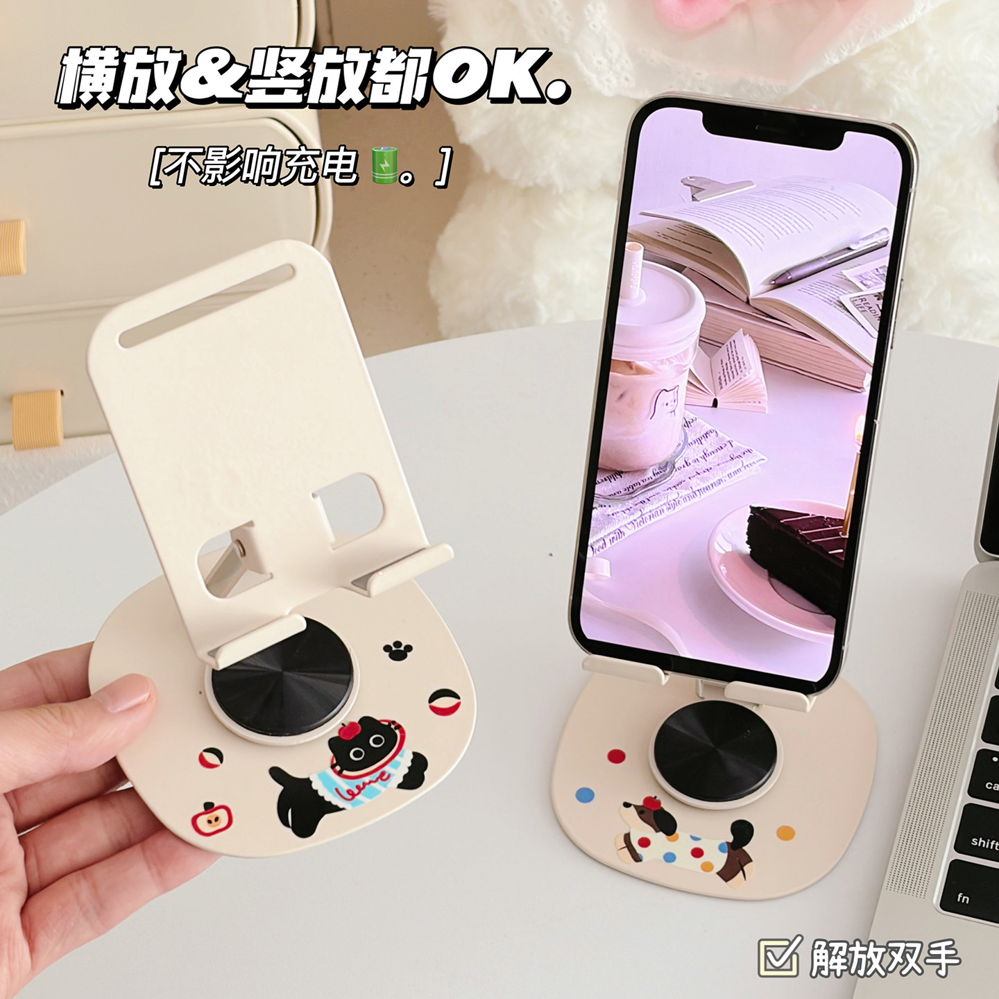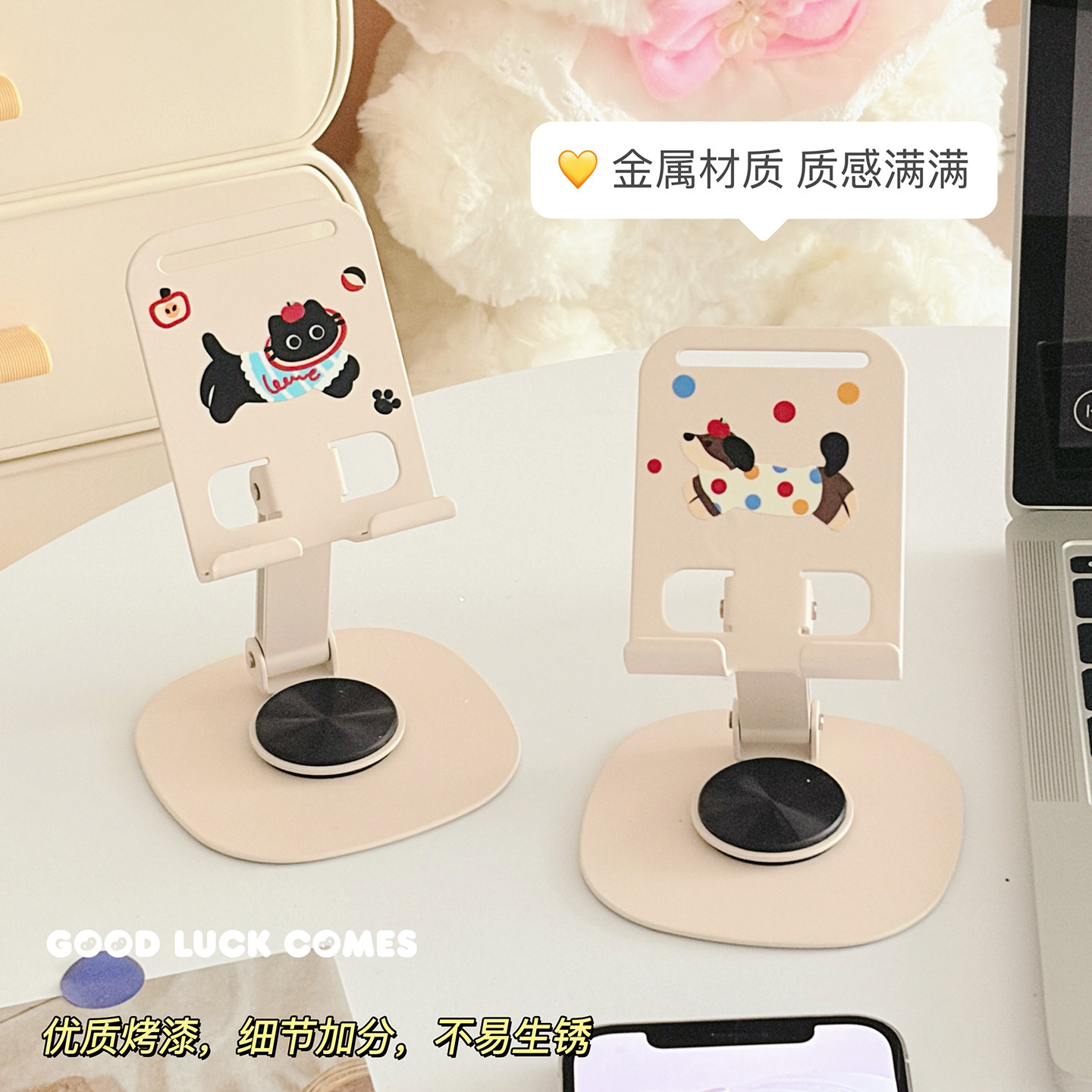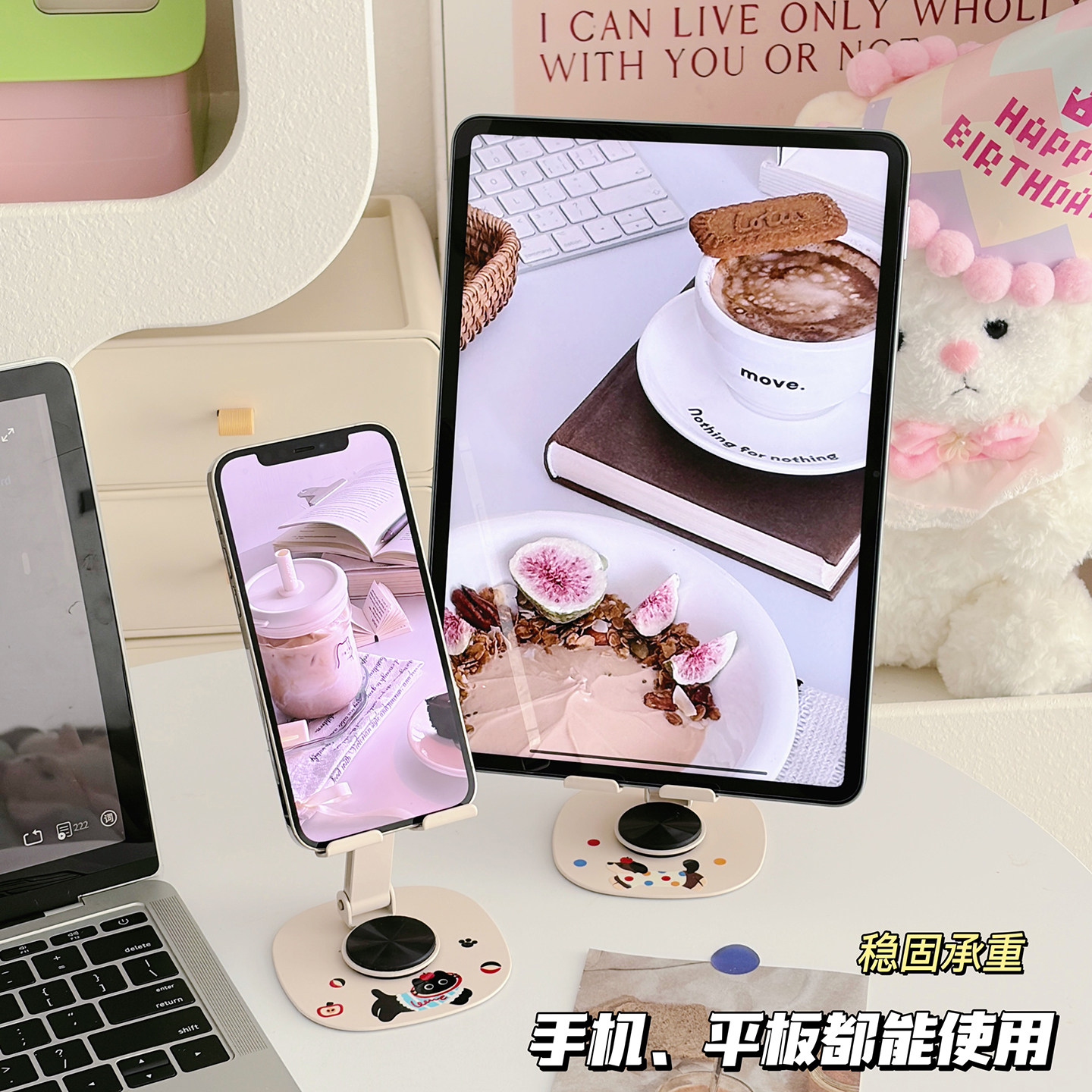 ins风奶油米色金属手机支架桌面追剧神器360度可旋转调节平板支架