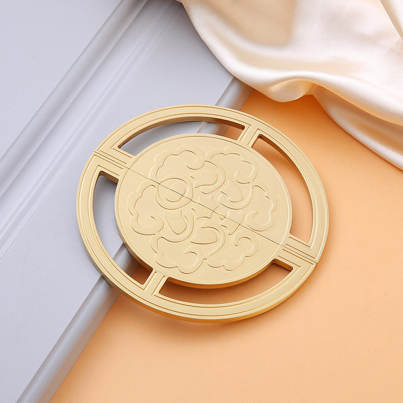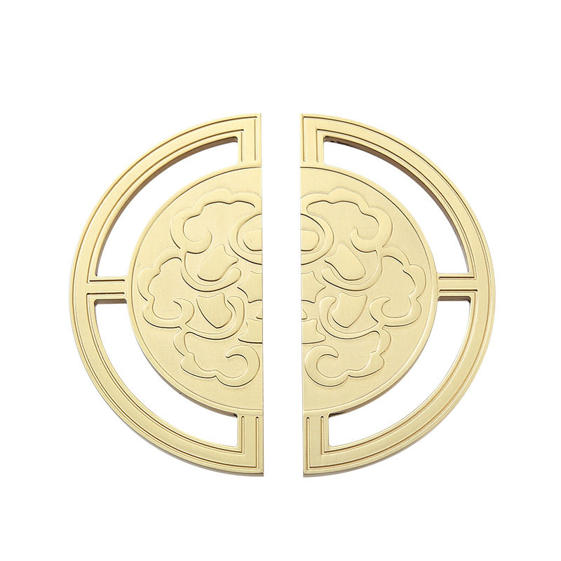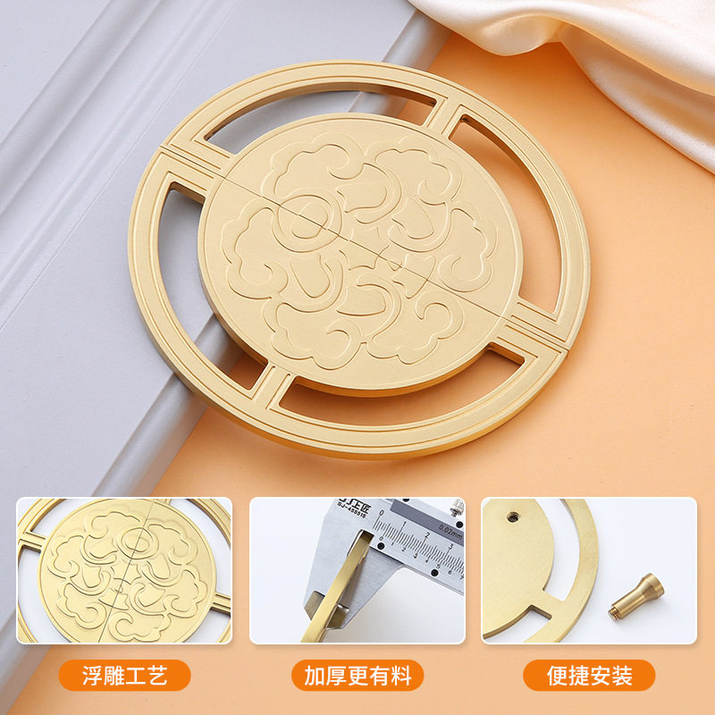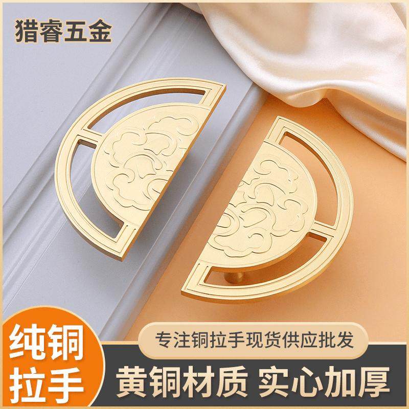 新中式半圆衣柜黄铜拉手浮雕图案家俱整体橱柜门把手金色黄铜拉手