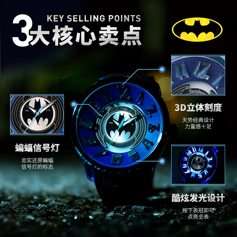 Tendence 蝙蝠侠DC联名手表防水日系腕表个性时尚天势表专属礼盒