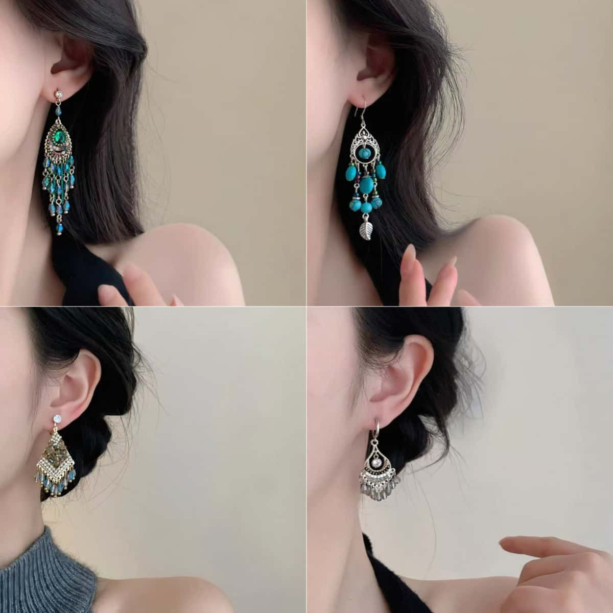 波西米亚设计感新中式串珠长流苏耳环气质长款耳饰轻奢高级感耳坠