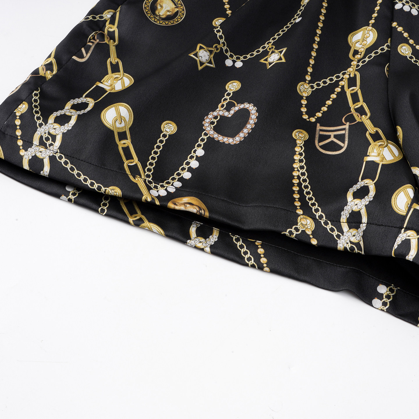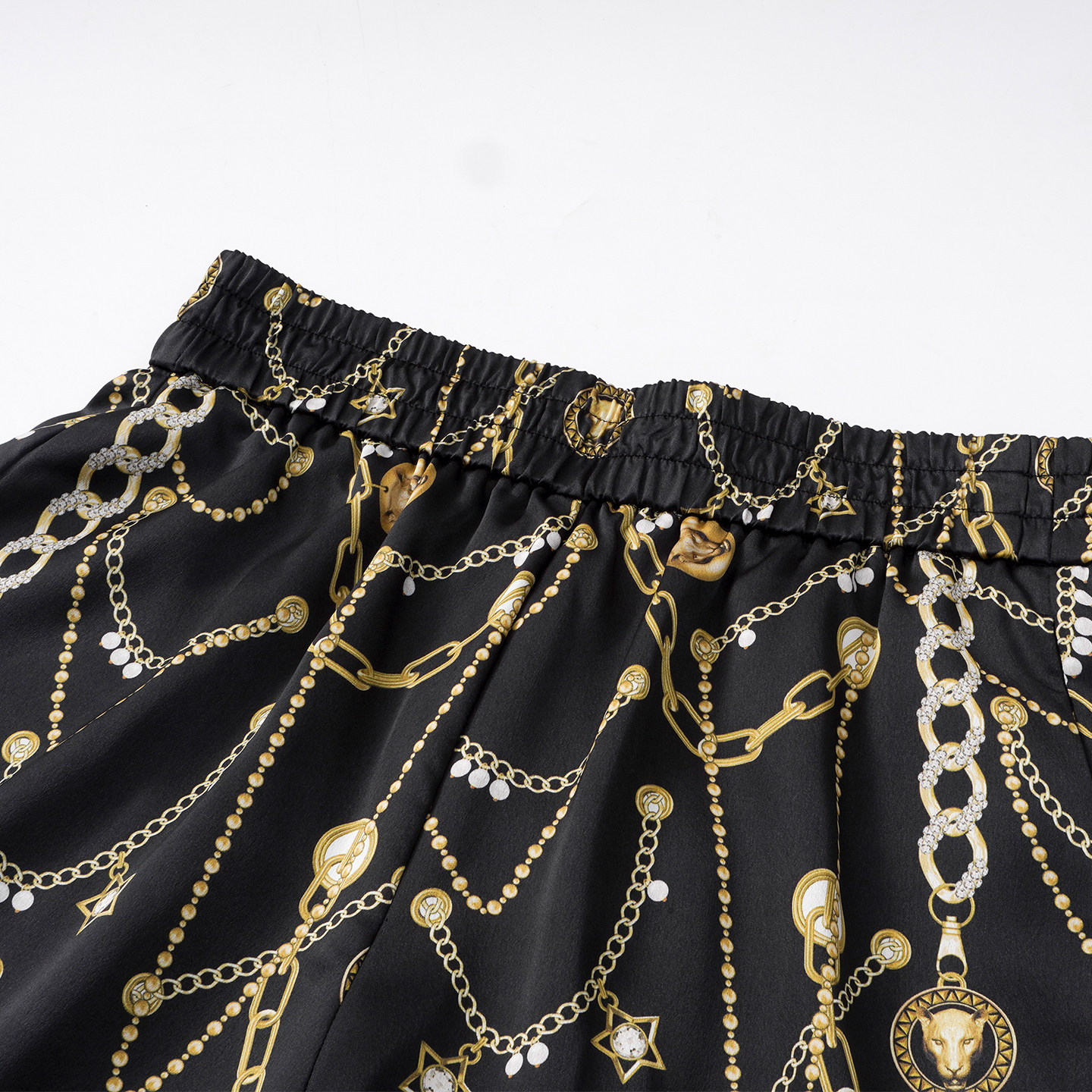 kodice夏季新款黑色印花松紧腰短裤宽松A字裤休闲时尚百搭女装