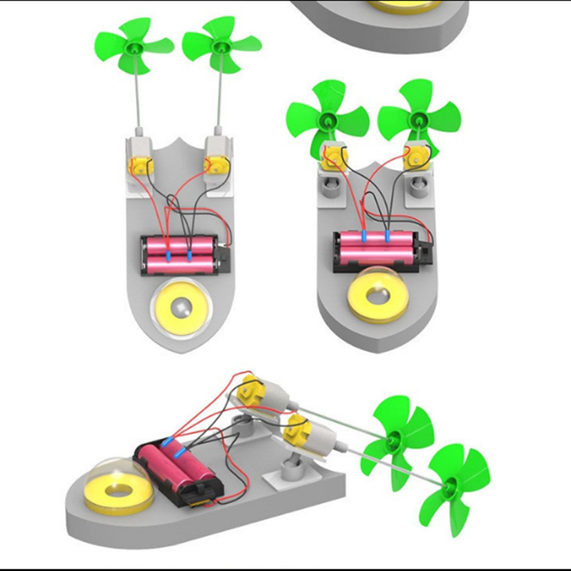 儿童益智玩具DIY科技小制作电动船物理科学实验双桨船科教玩具